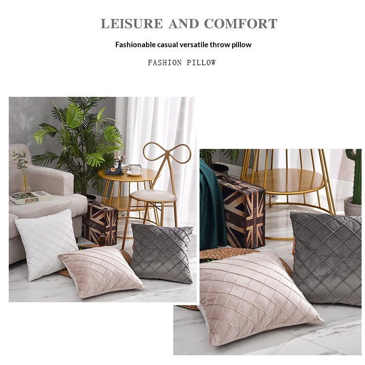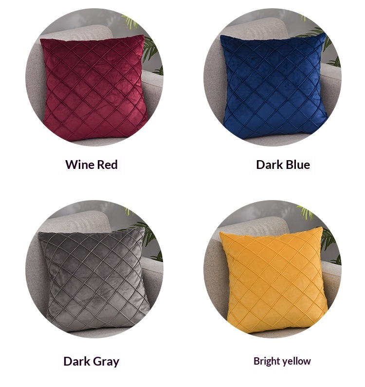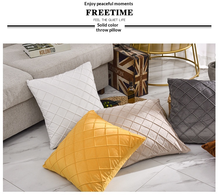Solid Color Velvet Embroidered Plaid Pillowcase