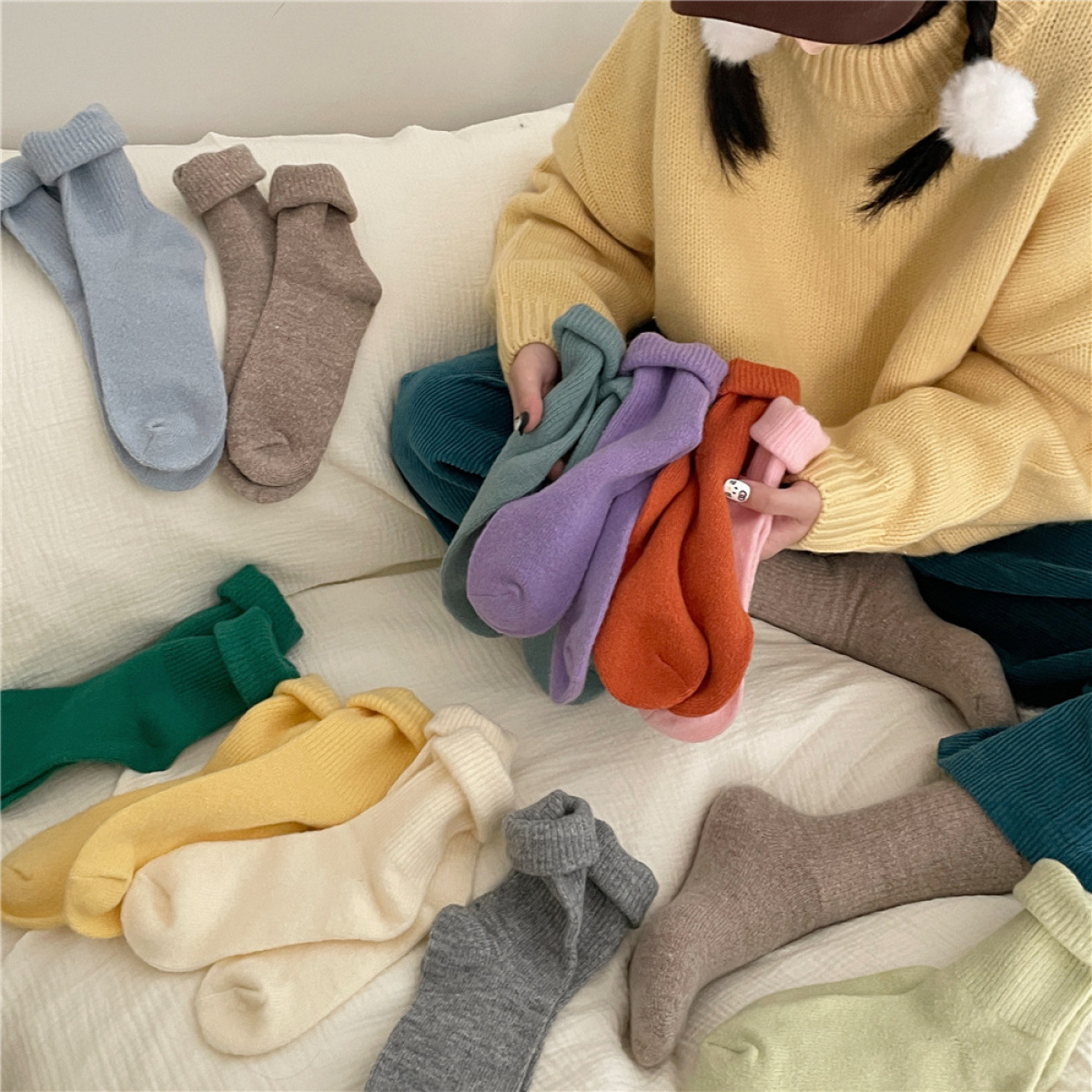 Colors: Cream White*, Peach Pink*, Honey Orange*, Floral Gray*, Chestnut Brown*, Warm Coffee/Black Coffee*, Black*, Korean Green*, Half-Sugar Milk Coffee*, Artemisia Green*, Pine Green*, Melon Green*, Chick Yellow*, Purple*, Raspberry Pink*, Milk Blue*