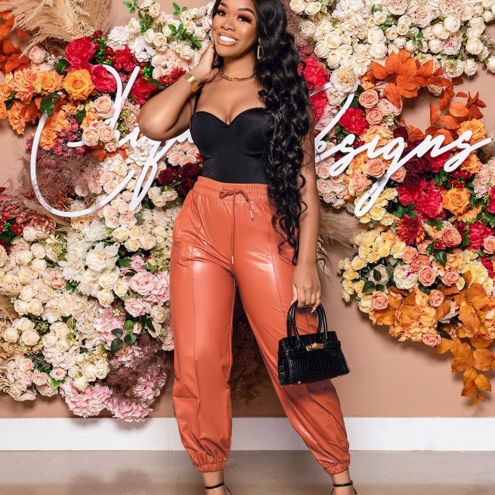 Solid Sexy PU Leather Casual Pants