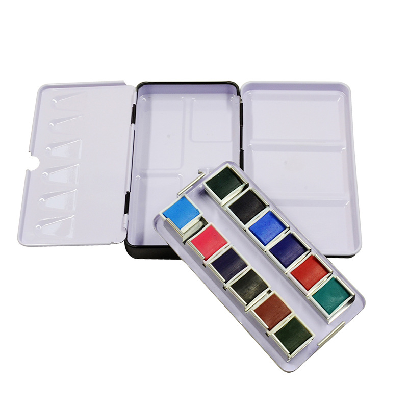 Solid Watercolor Iron Box Pigment Painting Three Fold Empty Iron Box