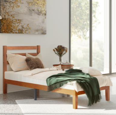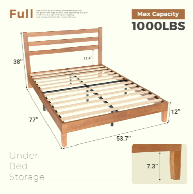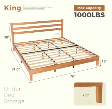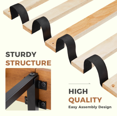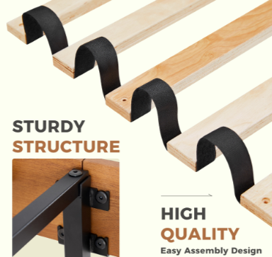 USER-FRIENDLY DESIGN: The bed frame slats are equipped with EVA sponge, which effectively reduces the friction between the slats and the bed frame and can reduce the noise. In addition, plastic foot plugs are added to the bottom of the foot of the bed to ensure stable support for the foot of the bed while never scratching your floor.