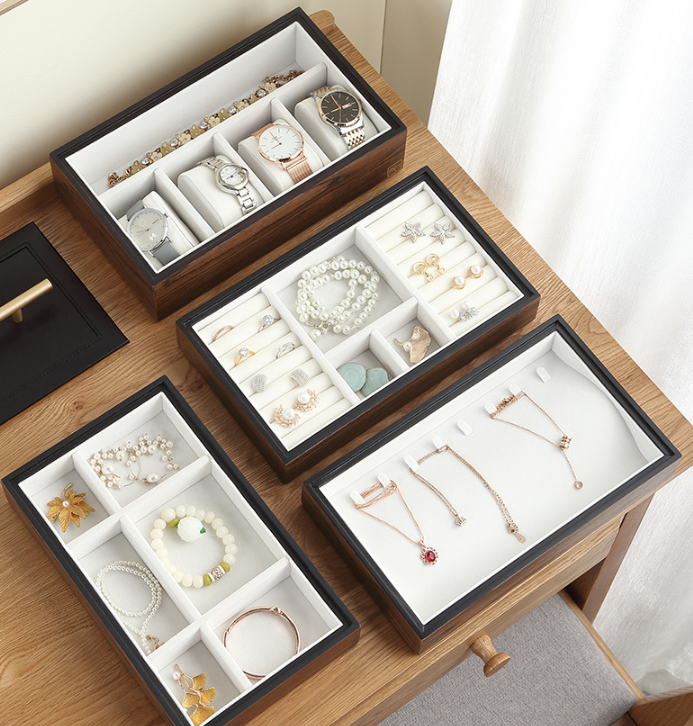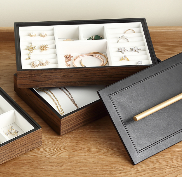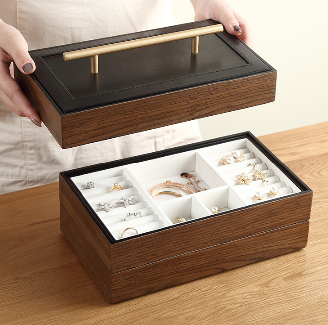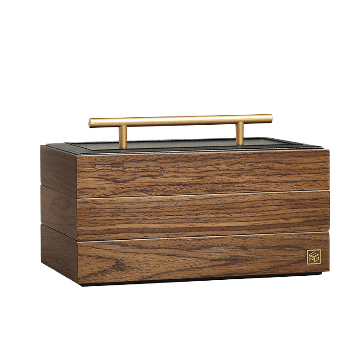 Cross-border exclusively for solid wood brass three-layer retro wooden necklace earrings earrings hand jewelry high-end jewelry storage box