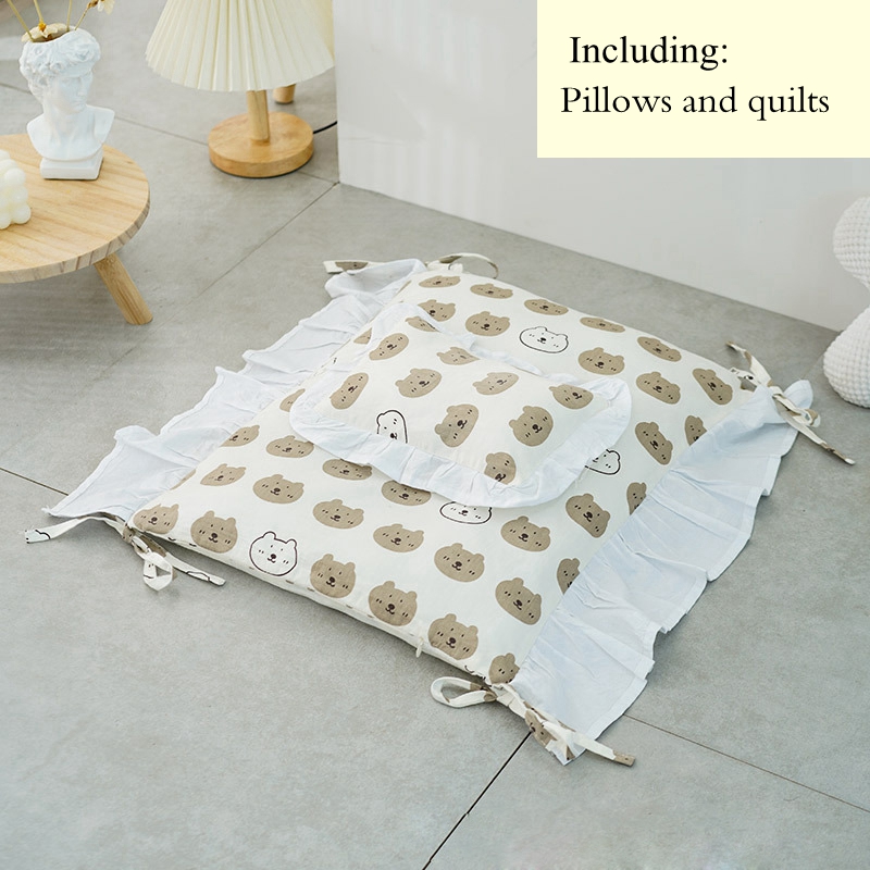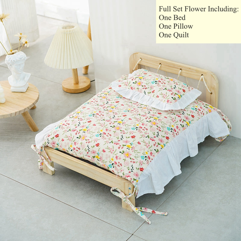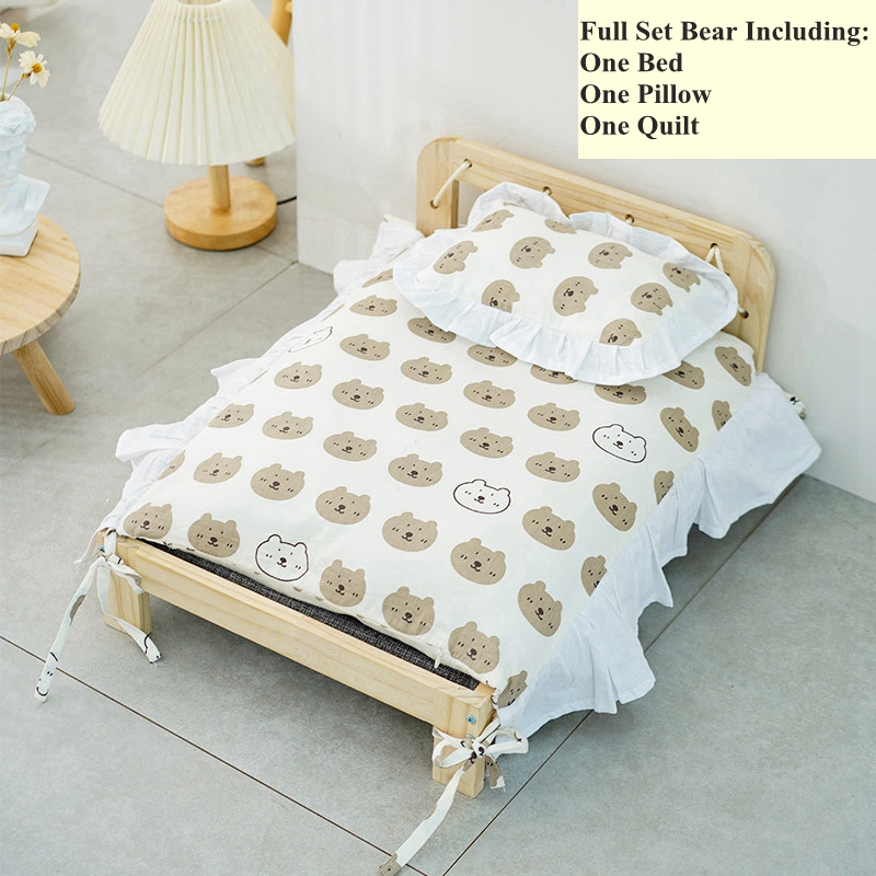 Specifications: solid wood cat bed + bear style set, solid wood cat bed + floral style set, solid wood cat bed, bear style bedding two-piece set, floral style bedding two-piece set