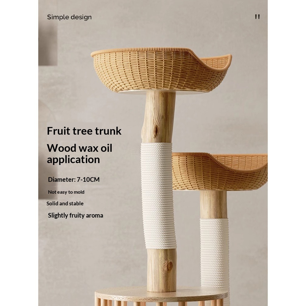 Style: Straight-grained pine main trunk for cat tree, fully sisal-covered curved fruit tree trunk for cat tree, with partial sisal sections