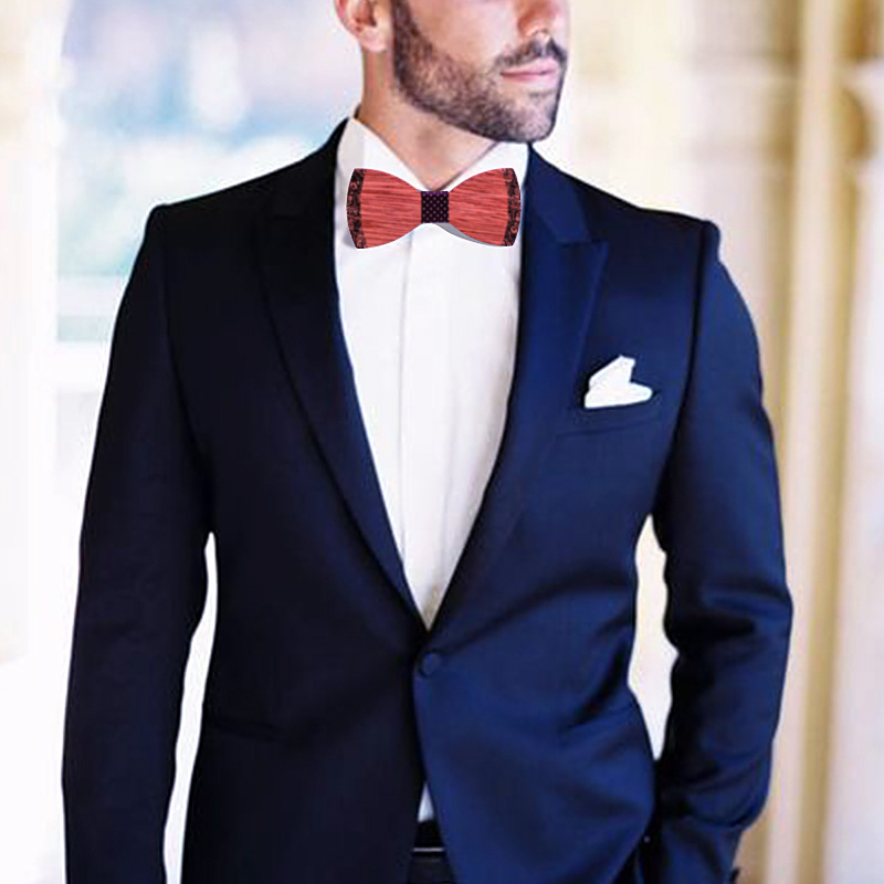 Material: Nanyang Begonia wood, showing high-quality texture and color, creating high-quality wooden bow tie