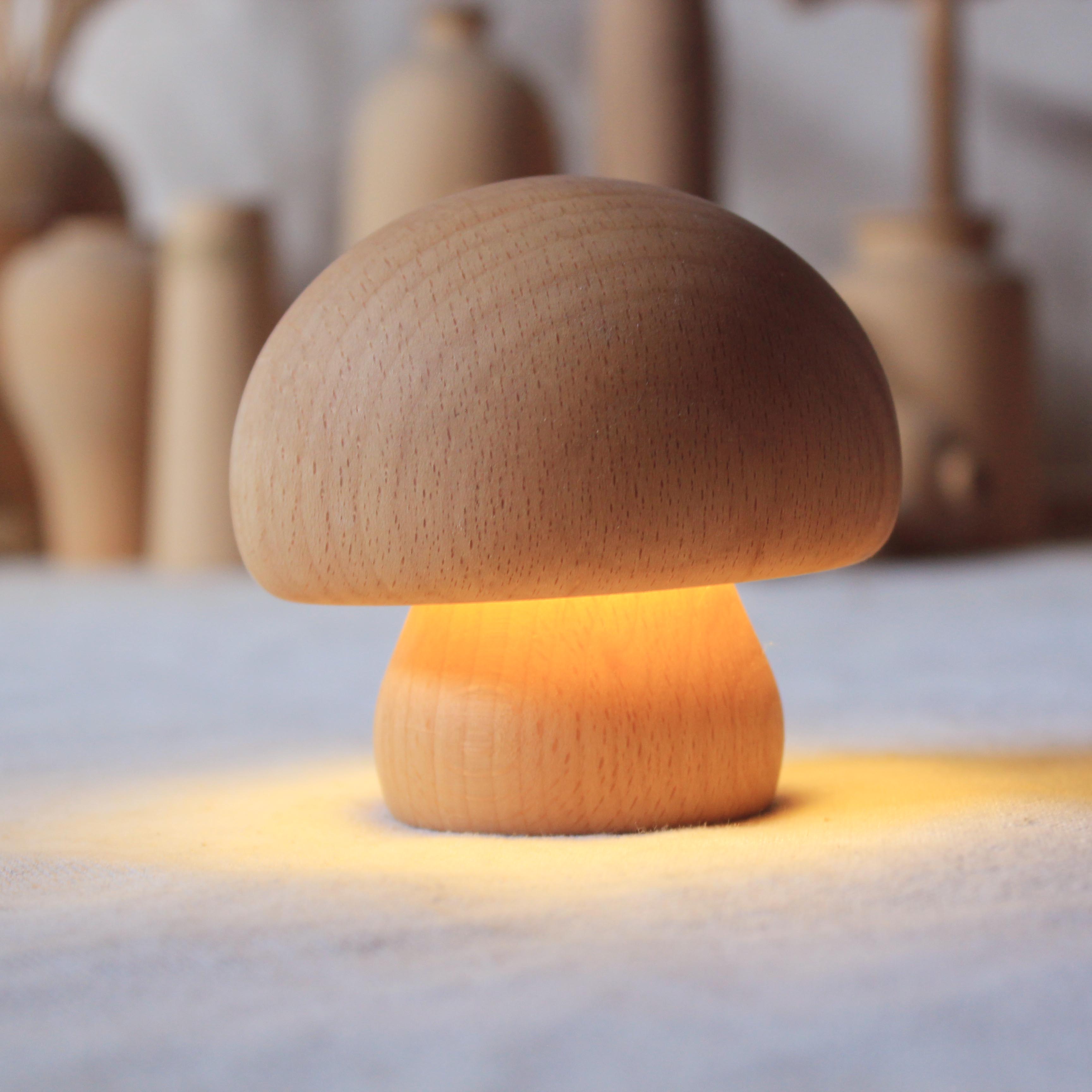 Solid Wood Mushroom Shape Rechargeable Night Light