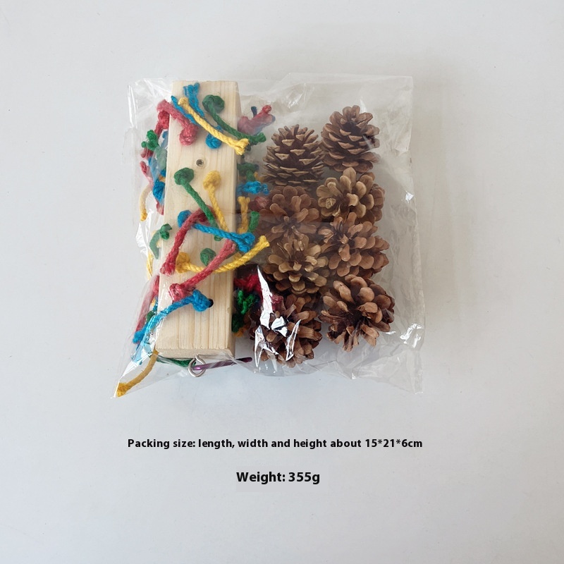 Specification: Wooden cube+Pine cone+Colored hemp rope (bagged)