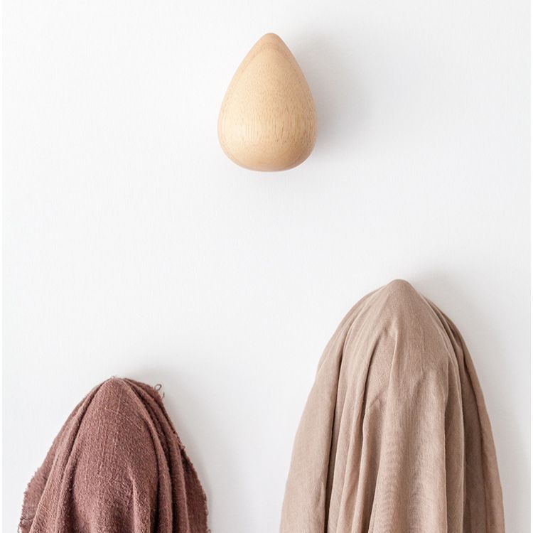 Solid Wood Water Drop Coat Hook Clothes Hook No Punching On Walls Raindrop Creative Clothes Hook Adhesive
