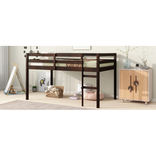 Product Name:Solid Wooden, Rubber Wooden Twin Loft Bed with Ladder, Bed Platform of Strengthened Slats , Espresso
