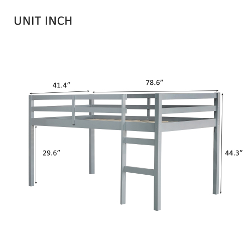 Product Name:Solid Wooden, Rubber Wooden Twin Loft Bed with Ladder, Bed Platform of Strengthened Slats , Grey