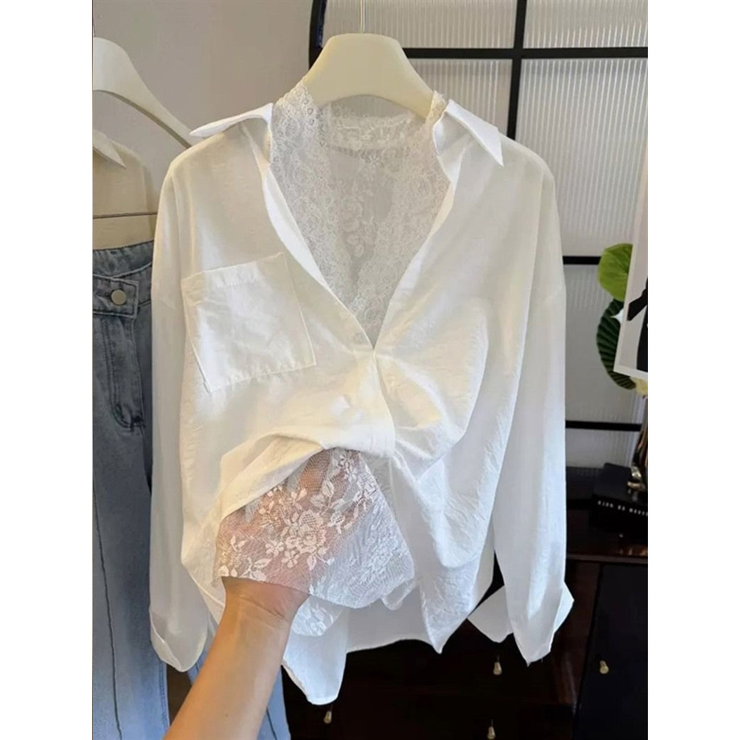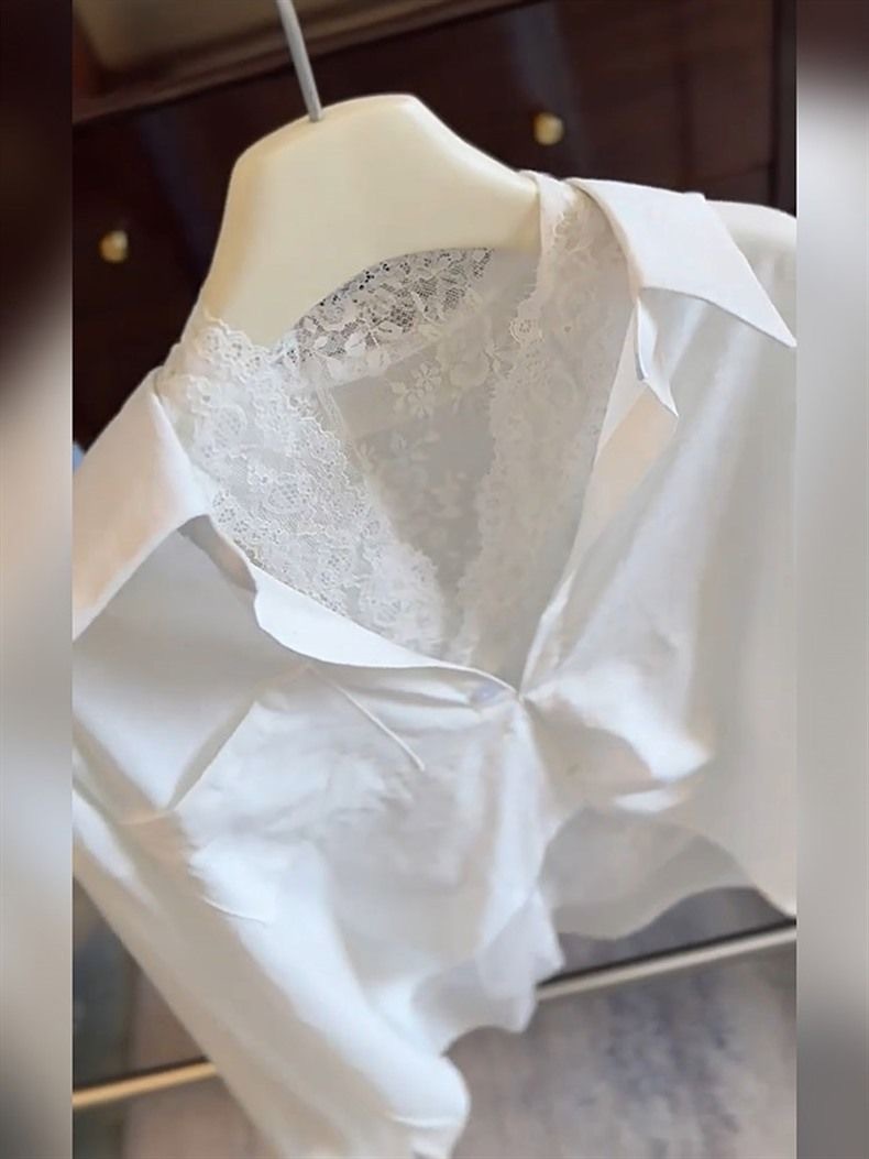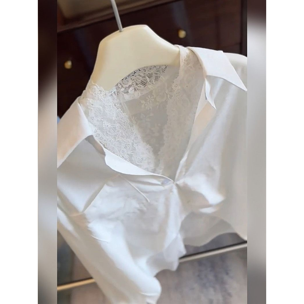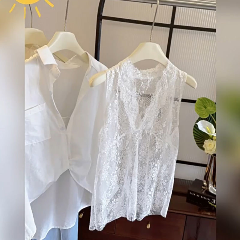 Color: Shirt + lace vest [two-piece set]