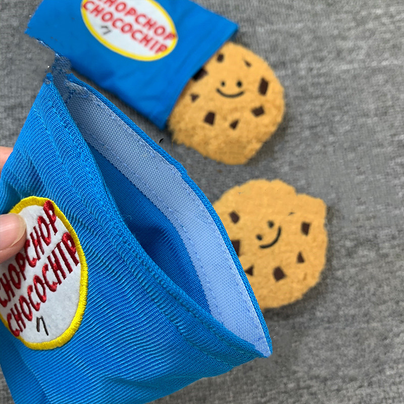 The bag can be filled with cookies, and the side is sealed with baby velcro, with rustling paper, and can also be used to hide food