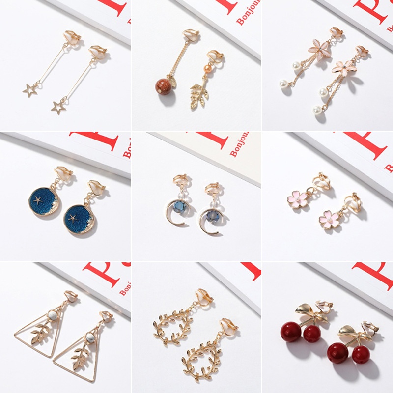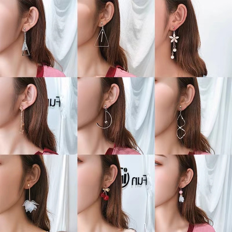 Color: 3# pink small flower, 5# willow leaf ear clip, 6# gold star ear clip, 8# hollow ball ball, 9# gradient Stone, 10# Cherry, 11# asymmetric triangle, 16# silver wave ear clip, 17# square ear clip, 19# silver pearl ear clip, 20# willow leaf type ear clip, 22# winding ball, 24# Silver triangle ear clip, 27# asymmetric five-pointed star, 29# blue crystal ear clip, 33# sapphire ear clip, 34# XINGX pendant, 36# Camellia ear clip, 38# willow leaf ear clip, 41# Black Square ear clip, 42# Black fan leaf ear clip