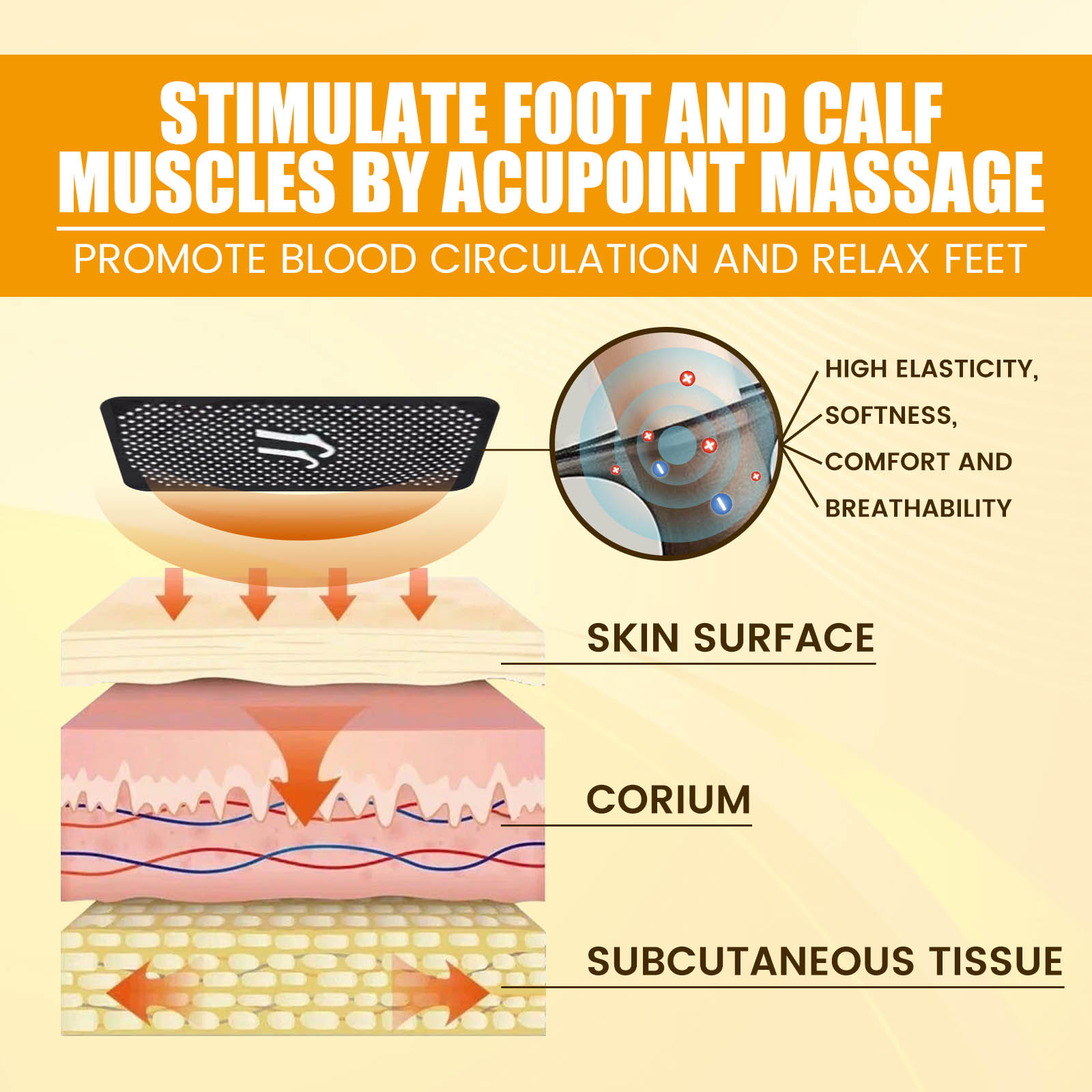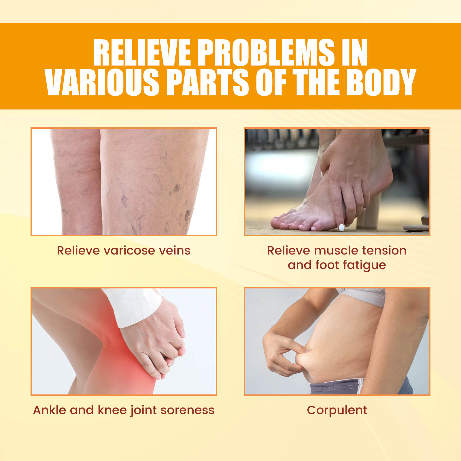 Our Ionic Body Shaping Stretch Socks contain tourmaline magnets, high elastic breathable fabrics, spandex. It can relieve body fatigue and inflammation, prevent fat accumulation, maintain a healthy body, and control appetite, reduce harmful waste in the body, quickly relieve swelling and heavy legs, ankles and feet, tighten the skin, effectively remove cellulite, improve blood circulation. Its use is very simple: directly put on the elastic socks, then put on the shoes to go out and walk, all day long can feel the comfort of the feet (please do not use this product material allergy; Trim your nails frequently to avoid damage to the stretch socks; Hand wash with warm water, neutral detergent). Reduce swelling, relax the body, relieve joint and muscle pain, and effectively remove cellulite.