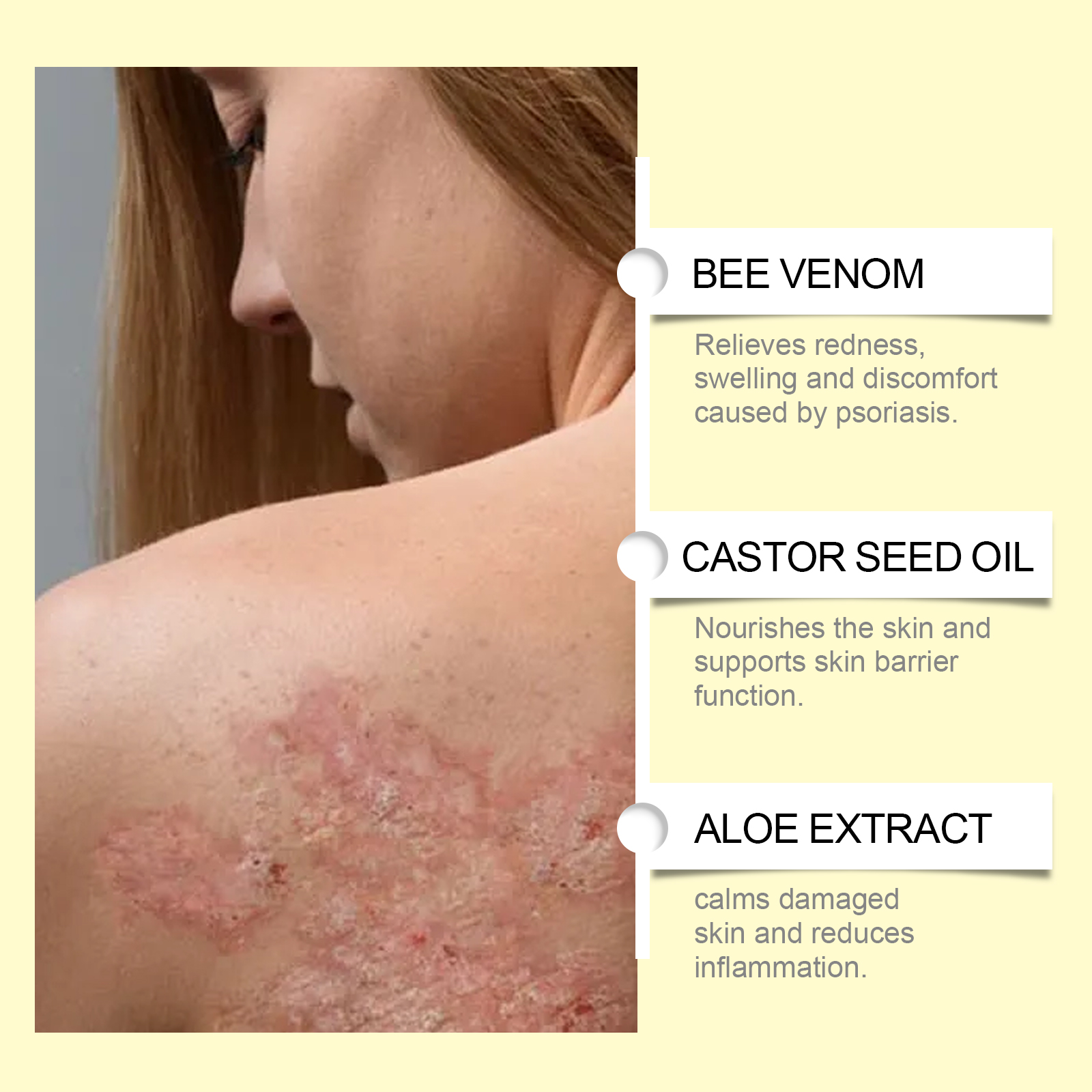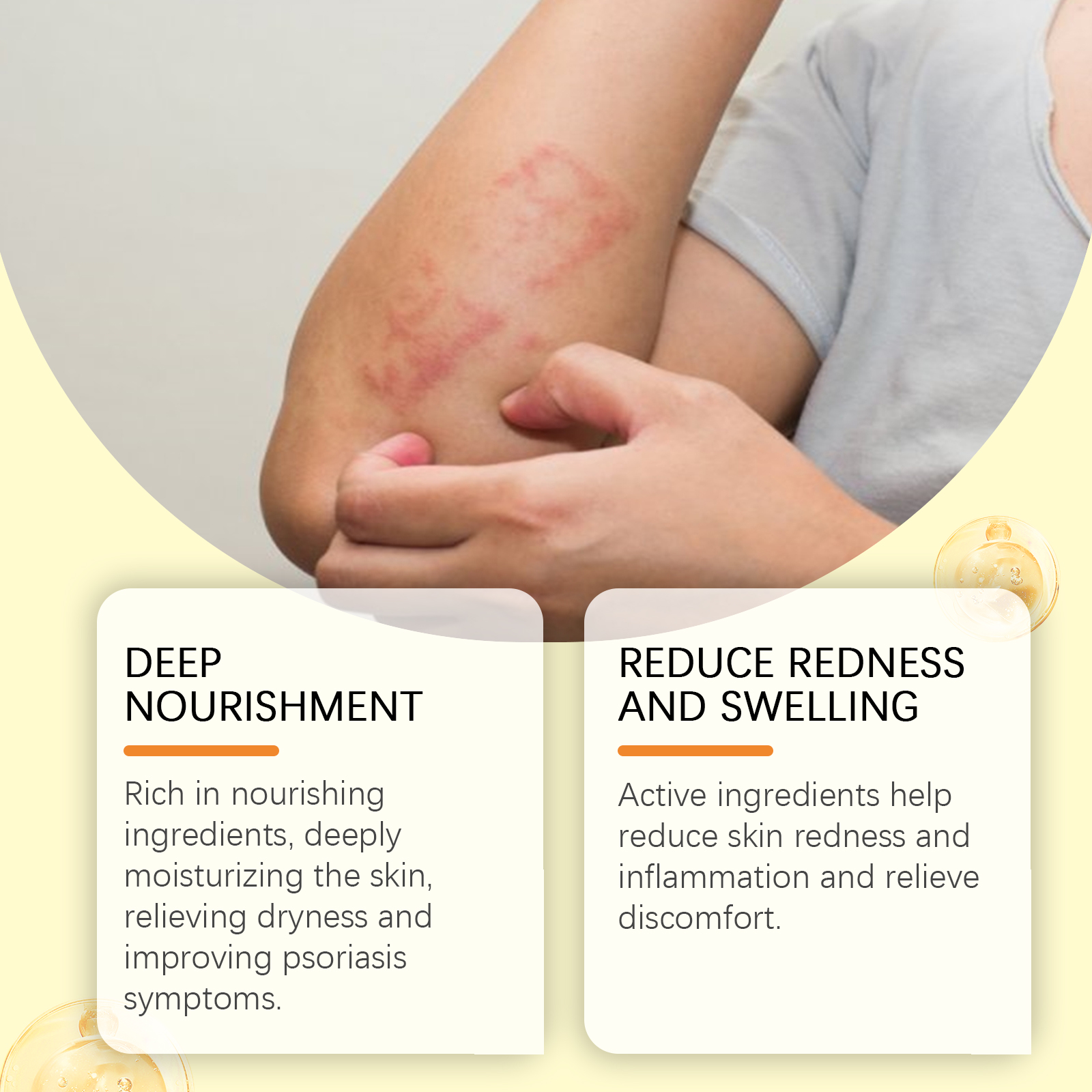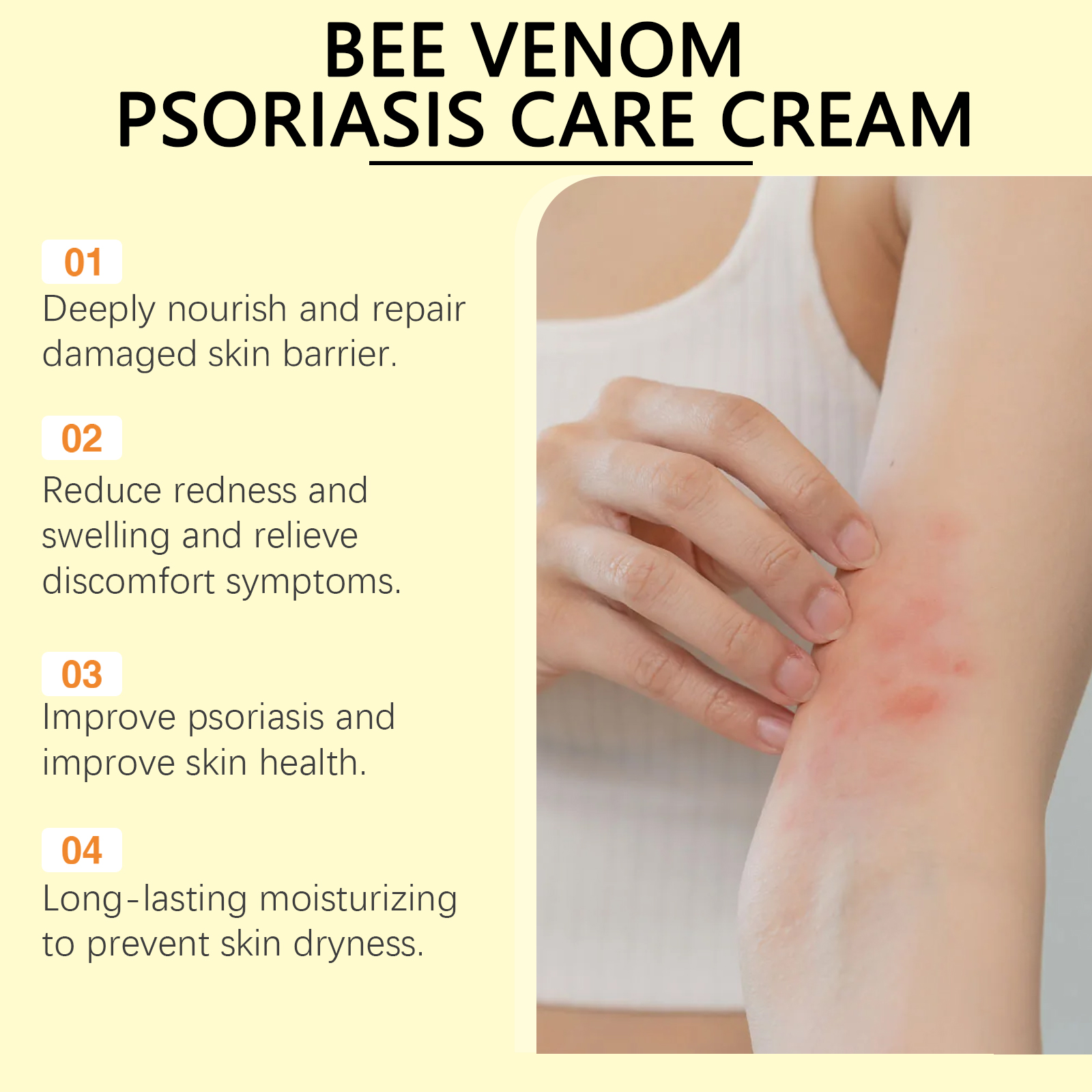 Our skin repair cream contains oat extract, aloe extract. It can help reduce skin redness and inflammation and relieve discomfort. Its use method is very simple: thoroughly clean the skin dry, take appropriate amount of this product evenly apply to the skin of psoriasis growth, gently massage to promote absorption. And rich in nourishing ingredients, deep moisturizing skin to relieve dryness, improve psoriasis symptoms.