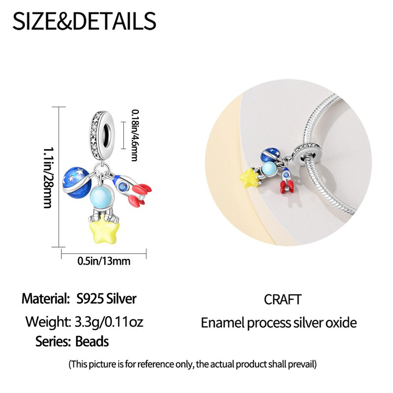 Space Travel Copper-Plated Silver DIY Bracelet Beaded Pendant