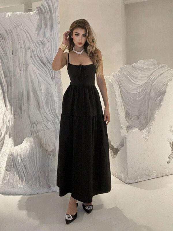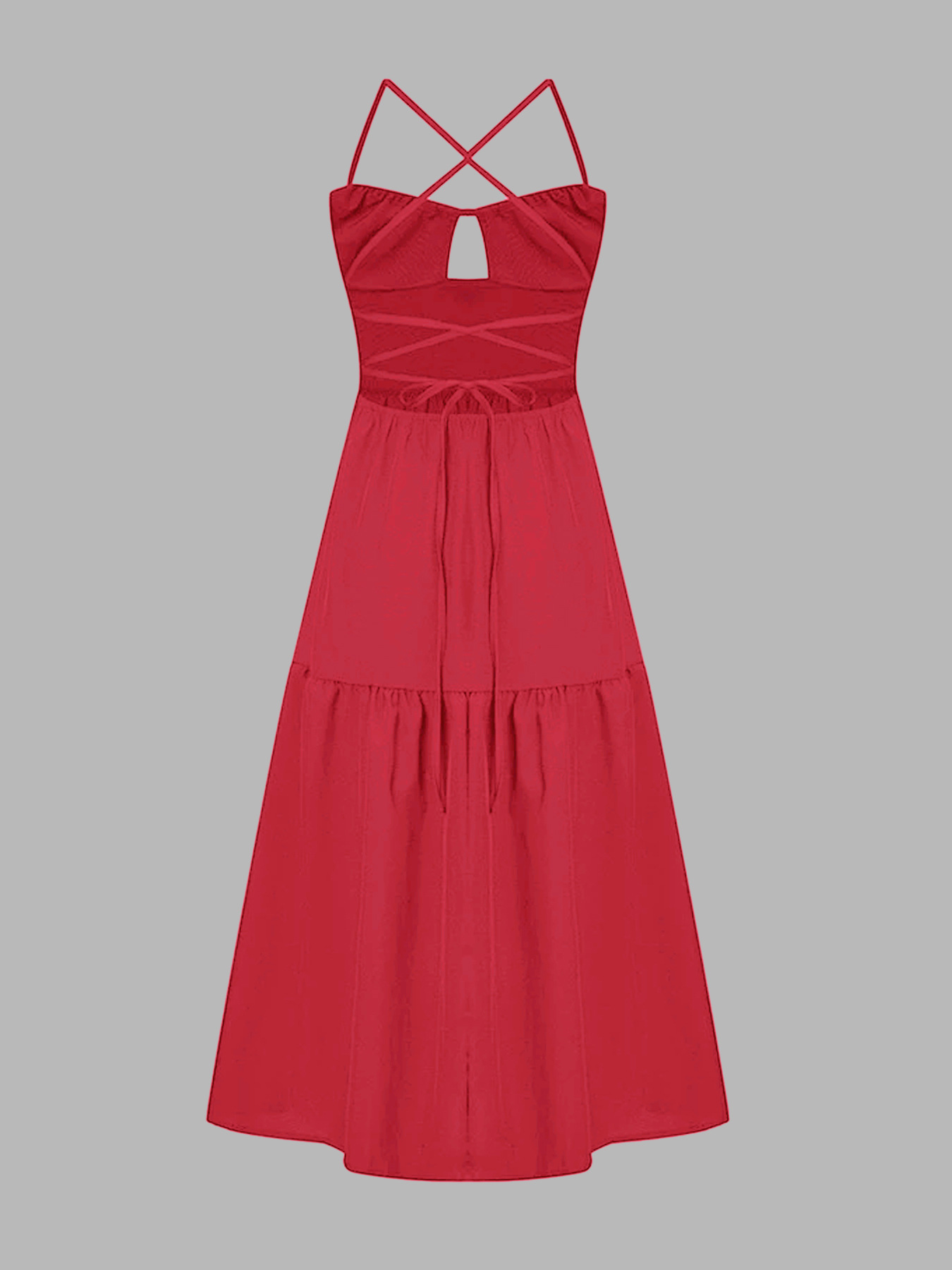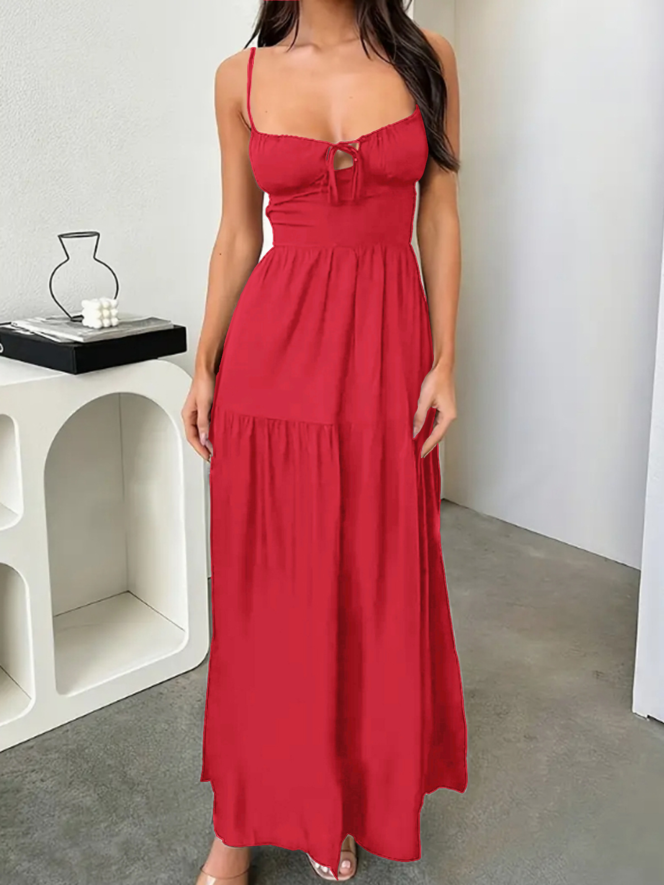 Spaghetti Strap Backless Long Solid Color Flowy Dress