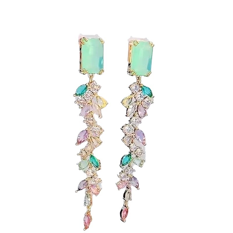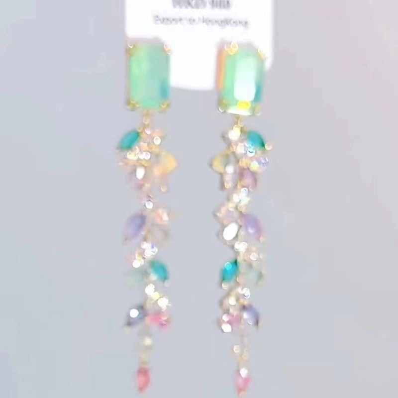 Color: Colorful Diamond-Shaped Wheat Tassel Earrings