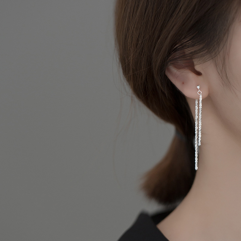 Sparkling S925 Silver Gypsophila Chain Tassel Long Earrings
