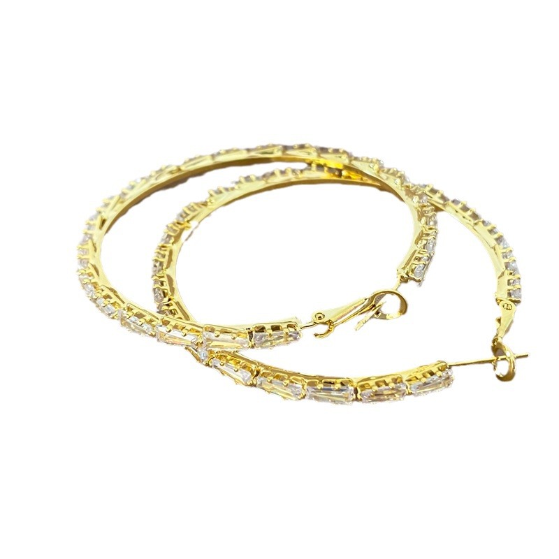 Color: shiny diamond inlaid large round earrings 925 silver needle plated with real gold