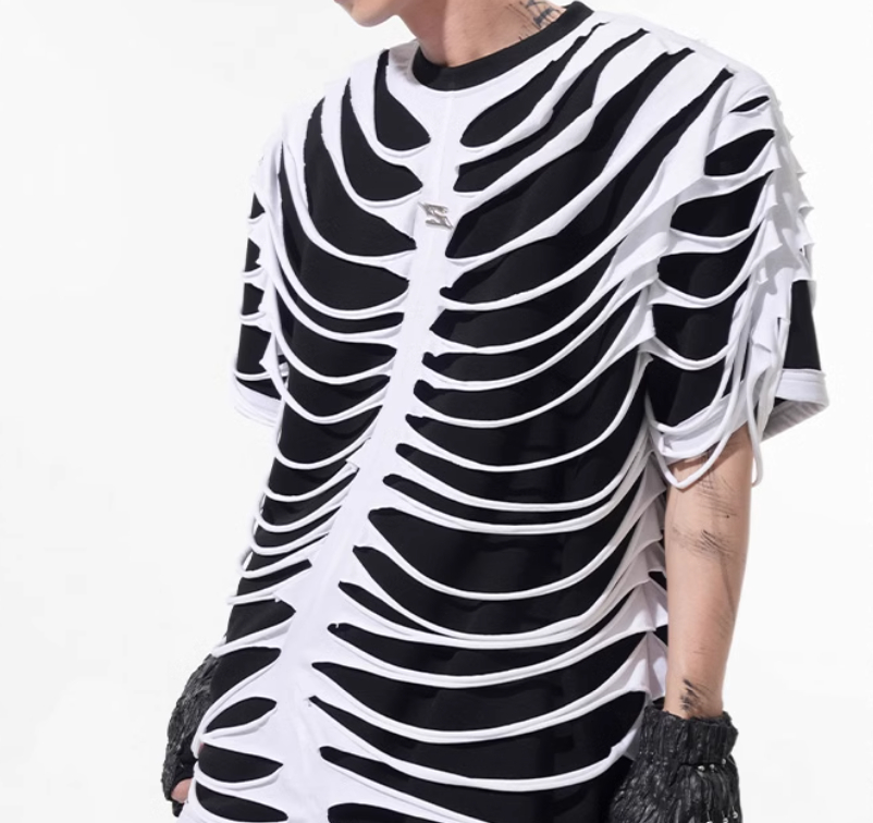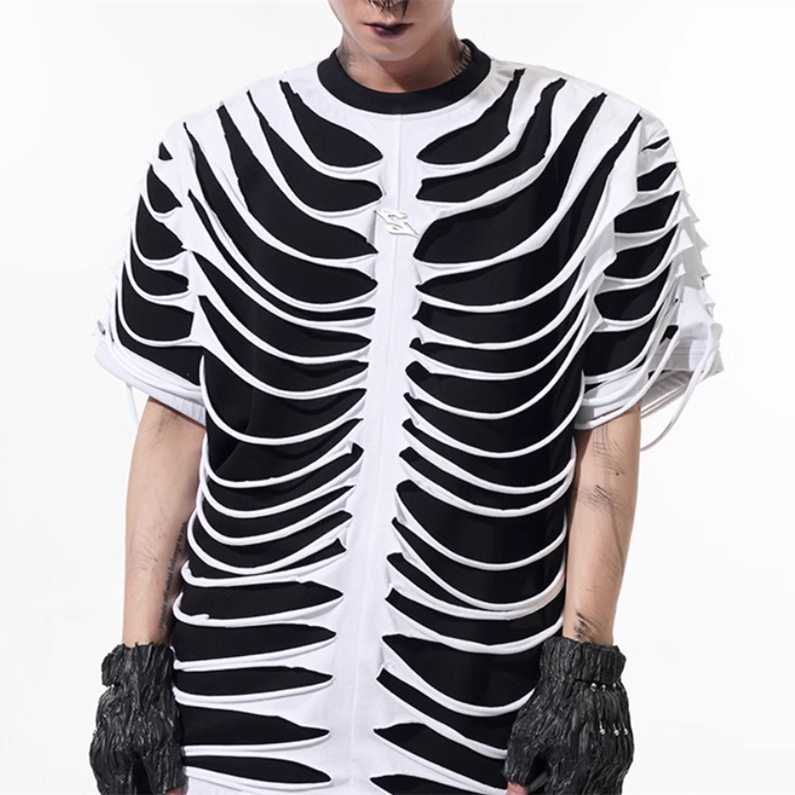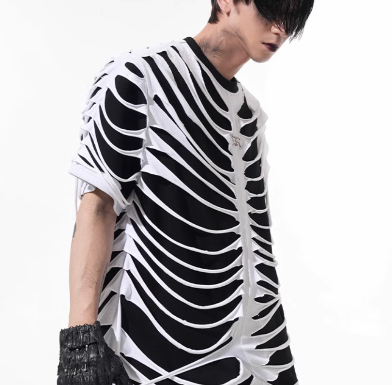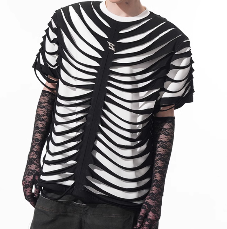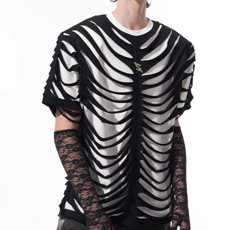 Special-interest Design Hollow Cut Bone T-shirt