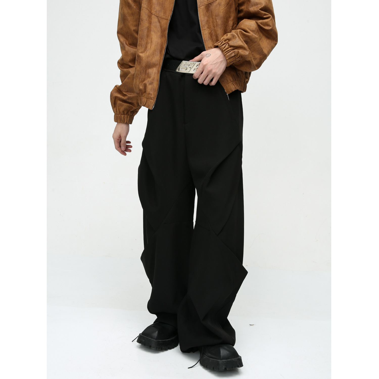 Special-interest Design Pleated Stitching Rhombus Loose Casual Pants Fashion