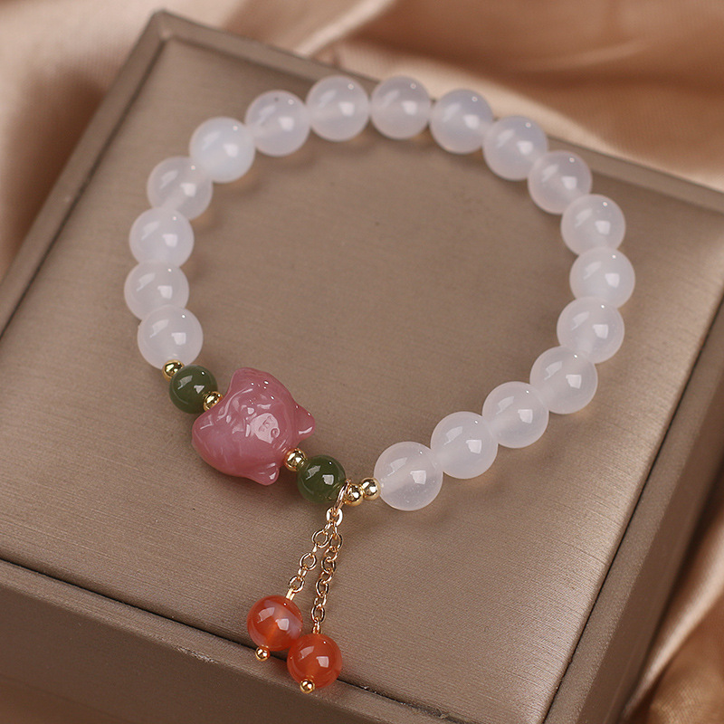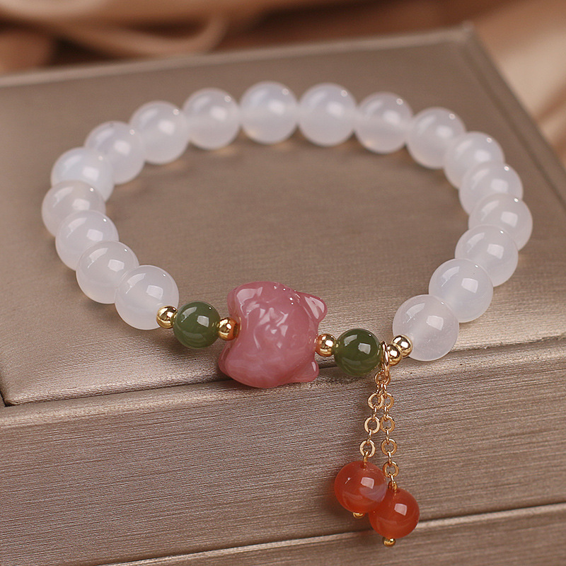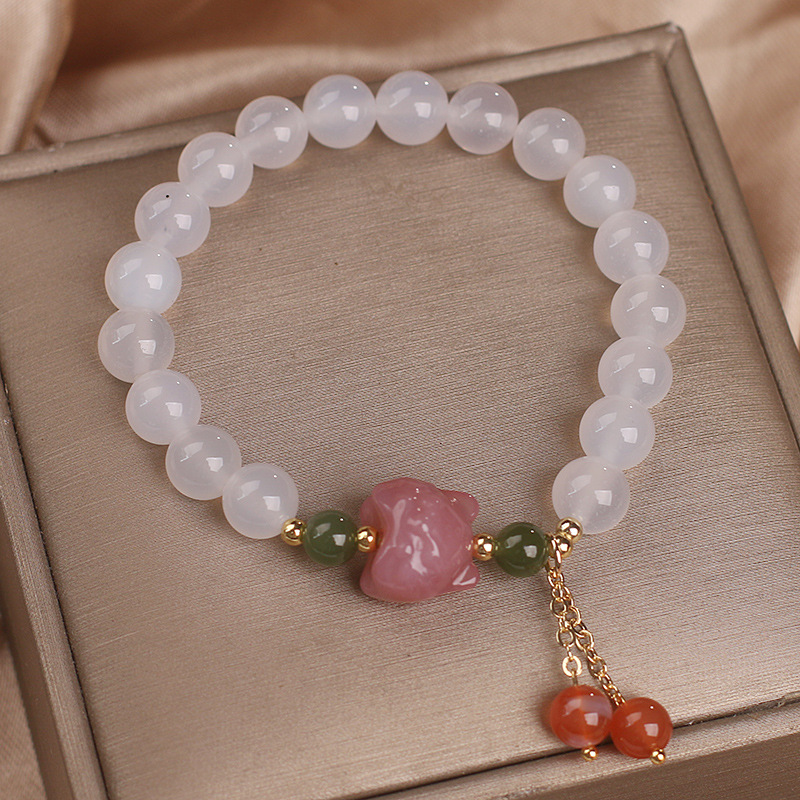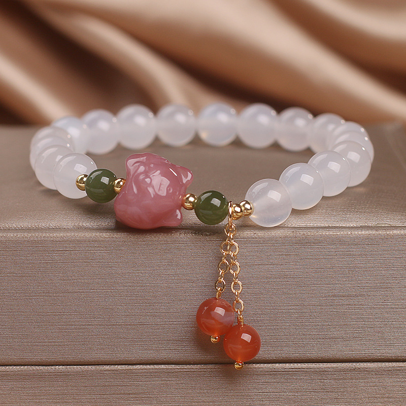 Product information:Style: Women'sColor: white agate tiger headPurity: 17cmMaterial: agate