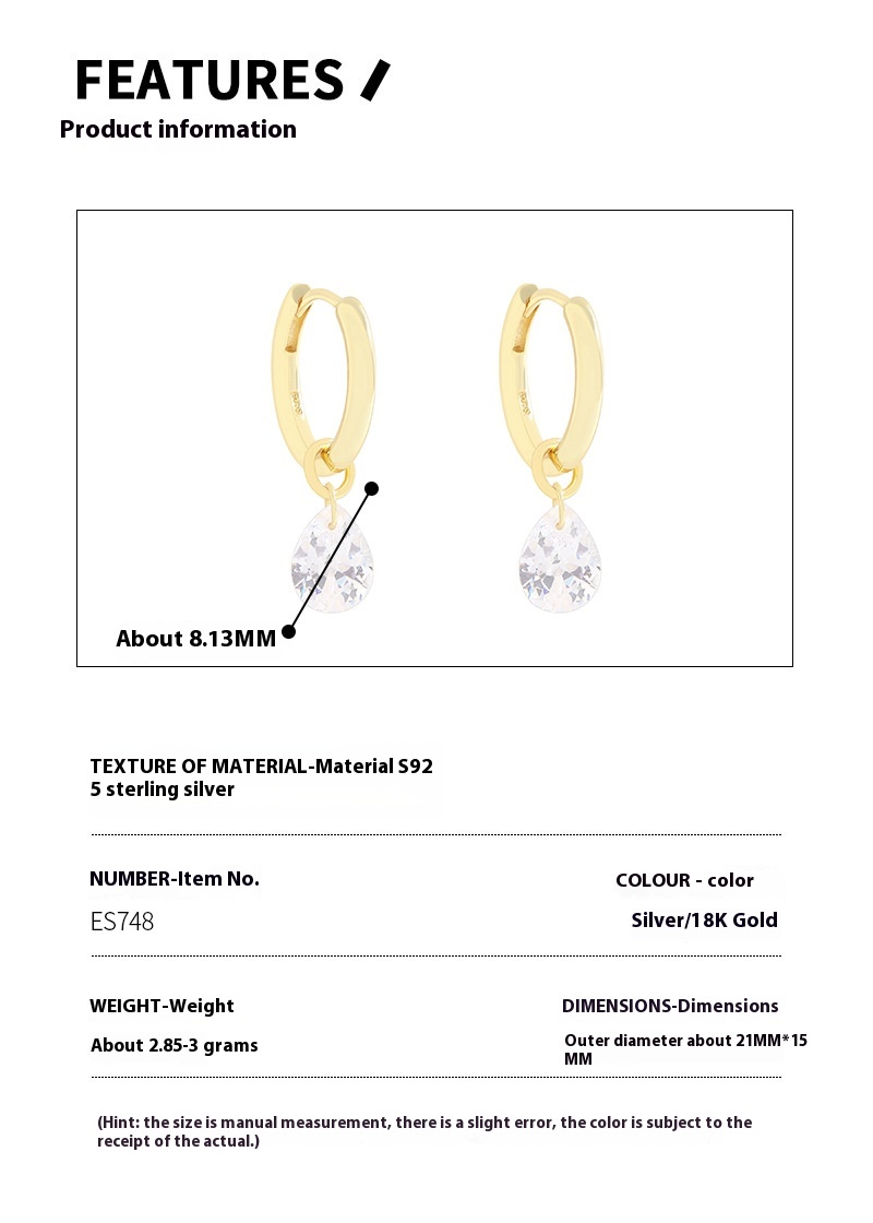 Product information:Color: ES748-Silver,ES748-18k gold Applicable population: Female Purity: 925 silver Shape: Geometry