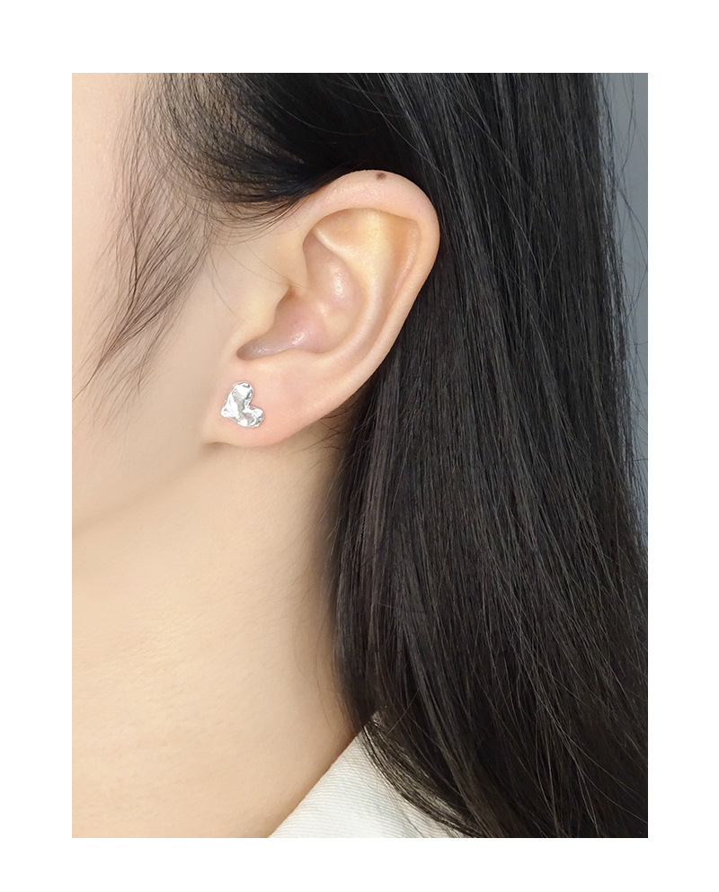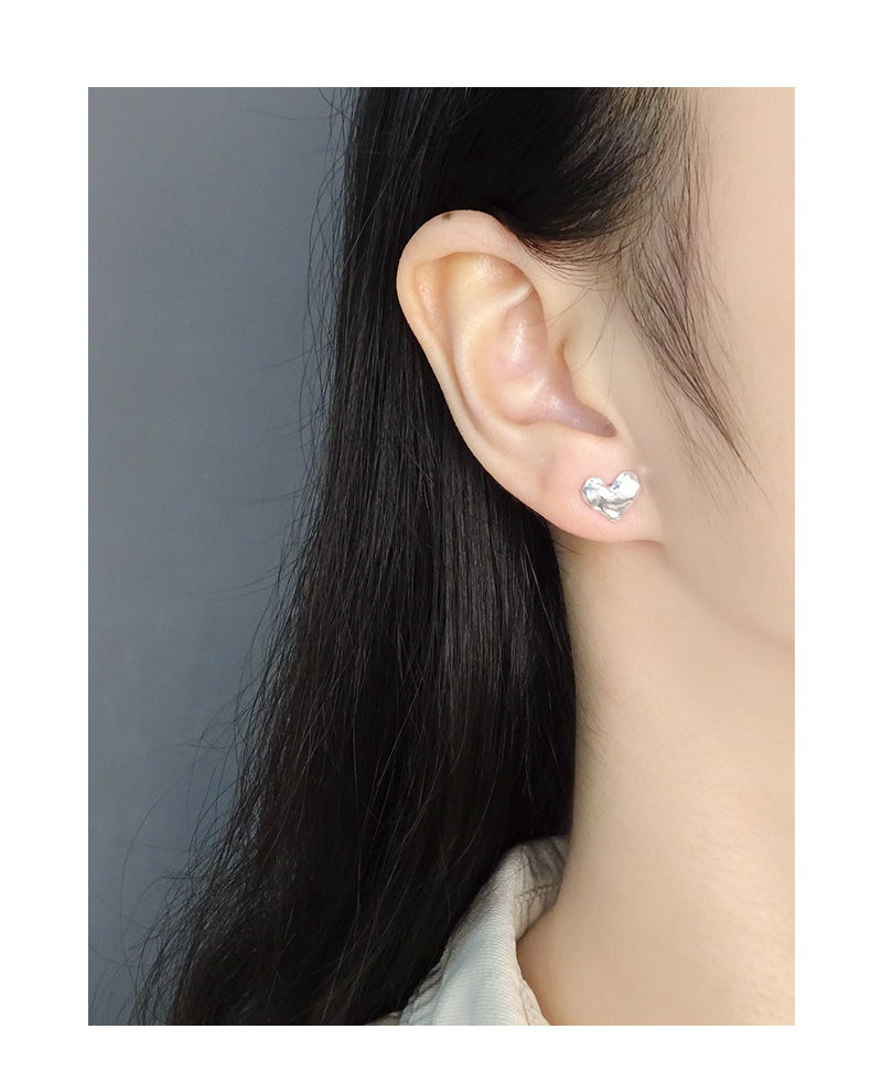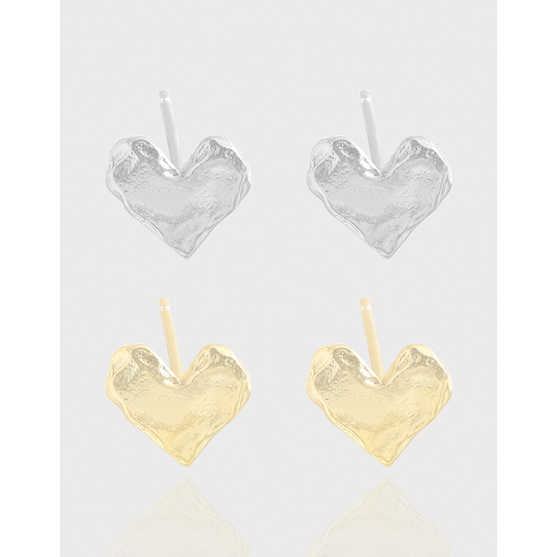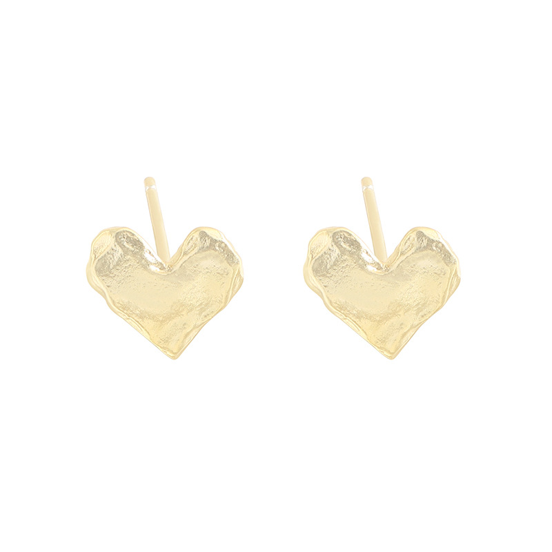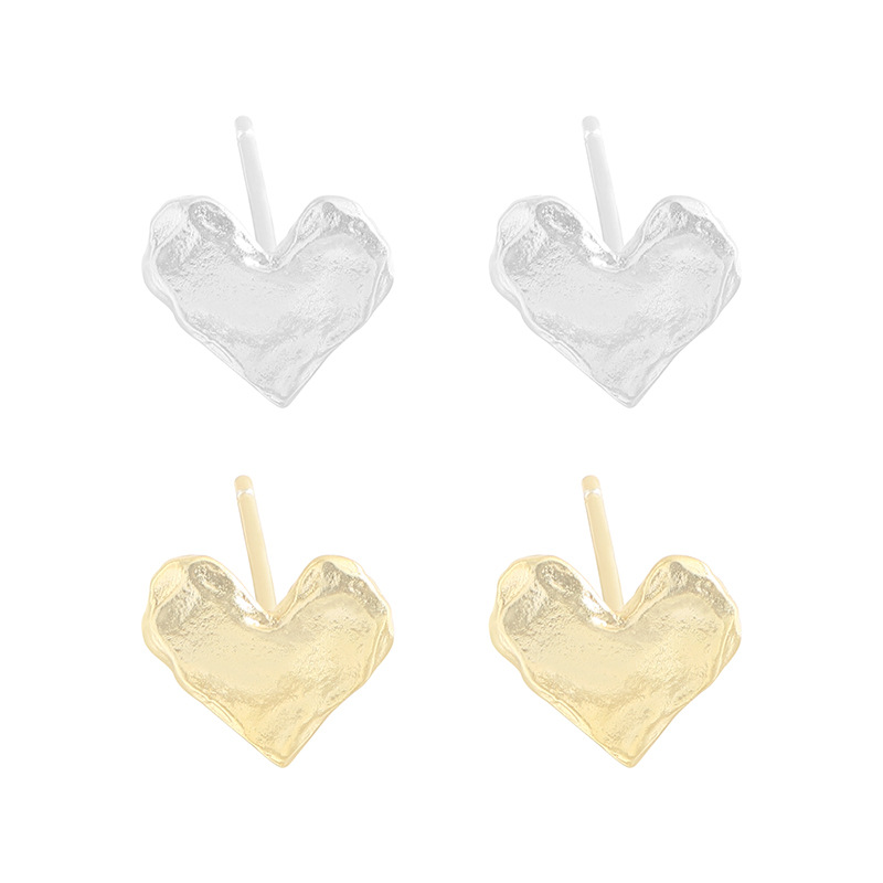 Special Interest Light Luxury Design Pleated Texture Lava Love Heart Stud Earrings