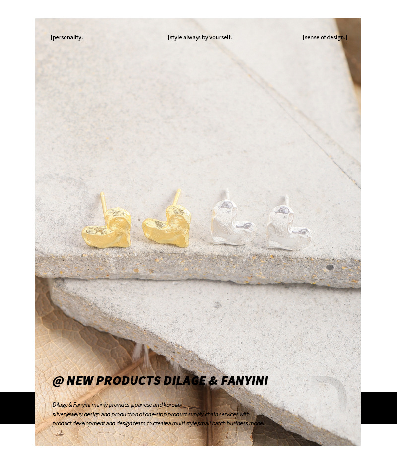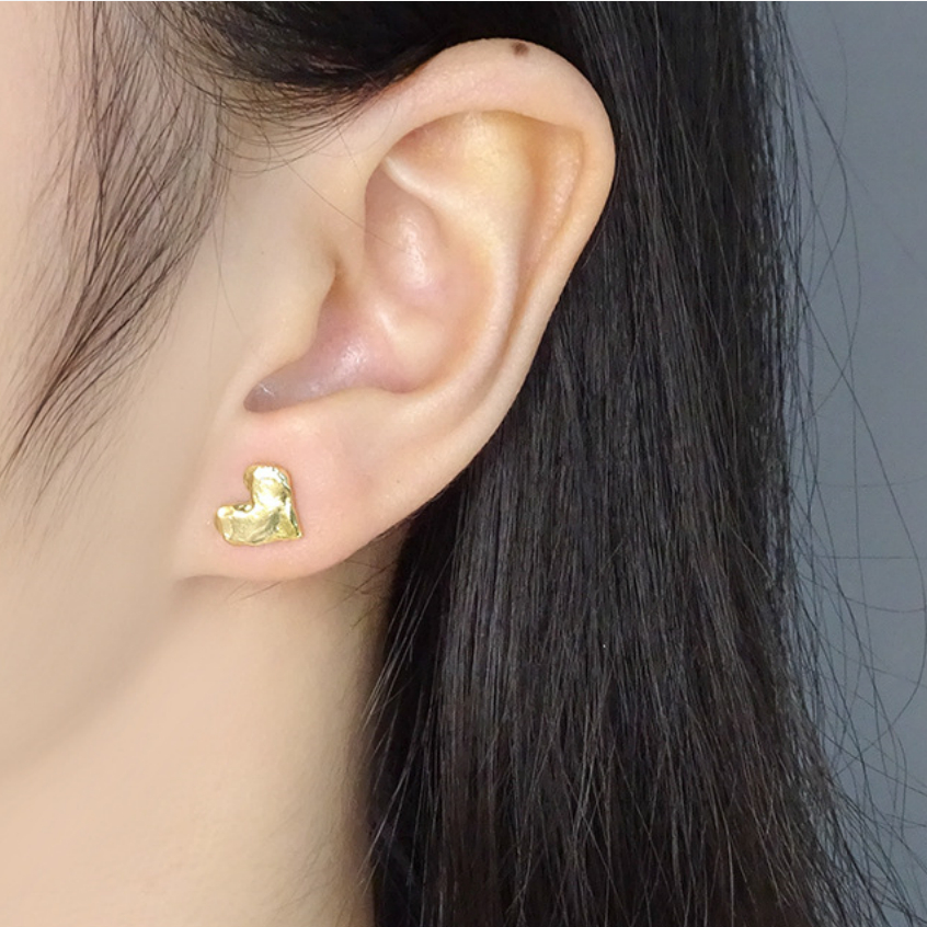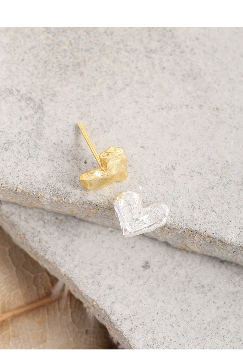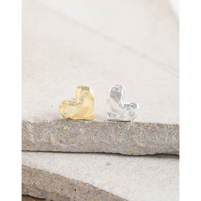 Special Interest Light Luxury Design Pleated Texture Lava Love Heart Stud Earrings
