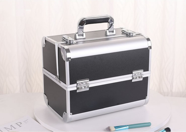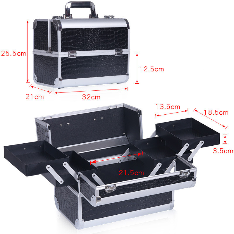 Specification: pink lockable aluminum box, black lockable aluminum box, makeup trolley box (black), makeup trolley box (pink), black PU suitcase, and plum red PU suitcase