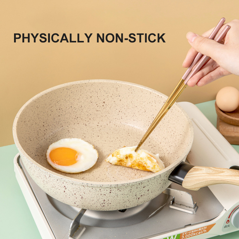 The non-stick pan conducts heat quickly and can only be cooked on medium and low heat