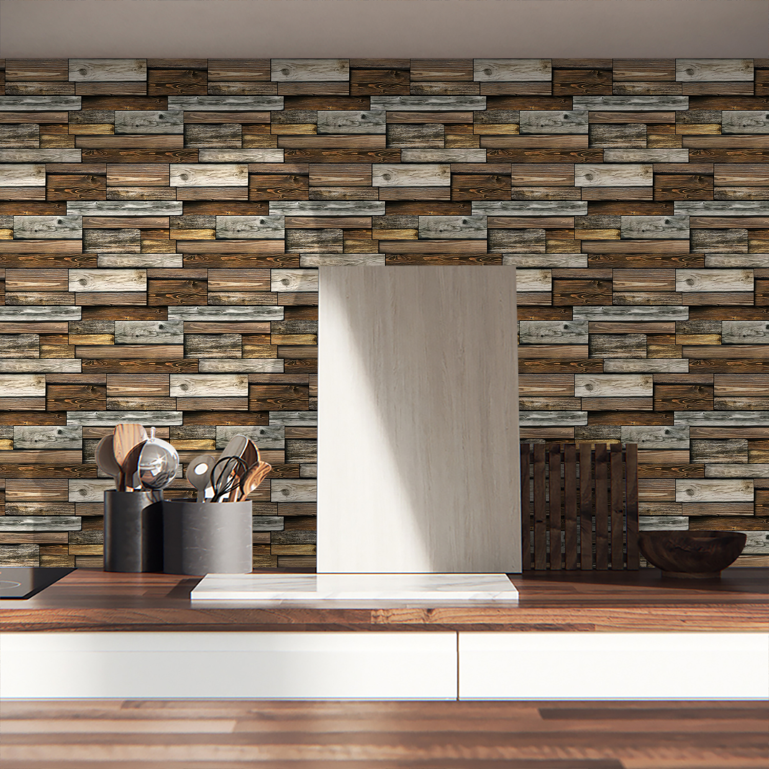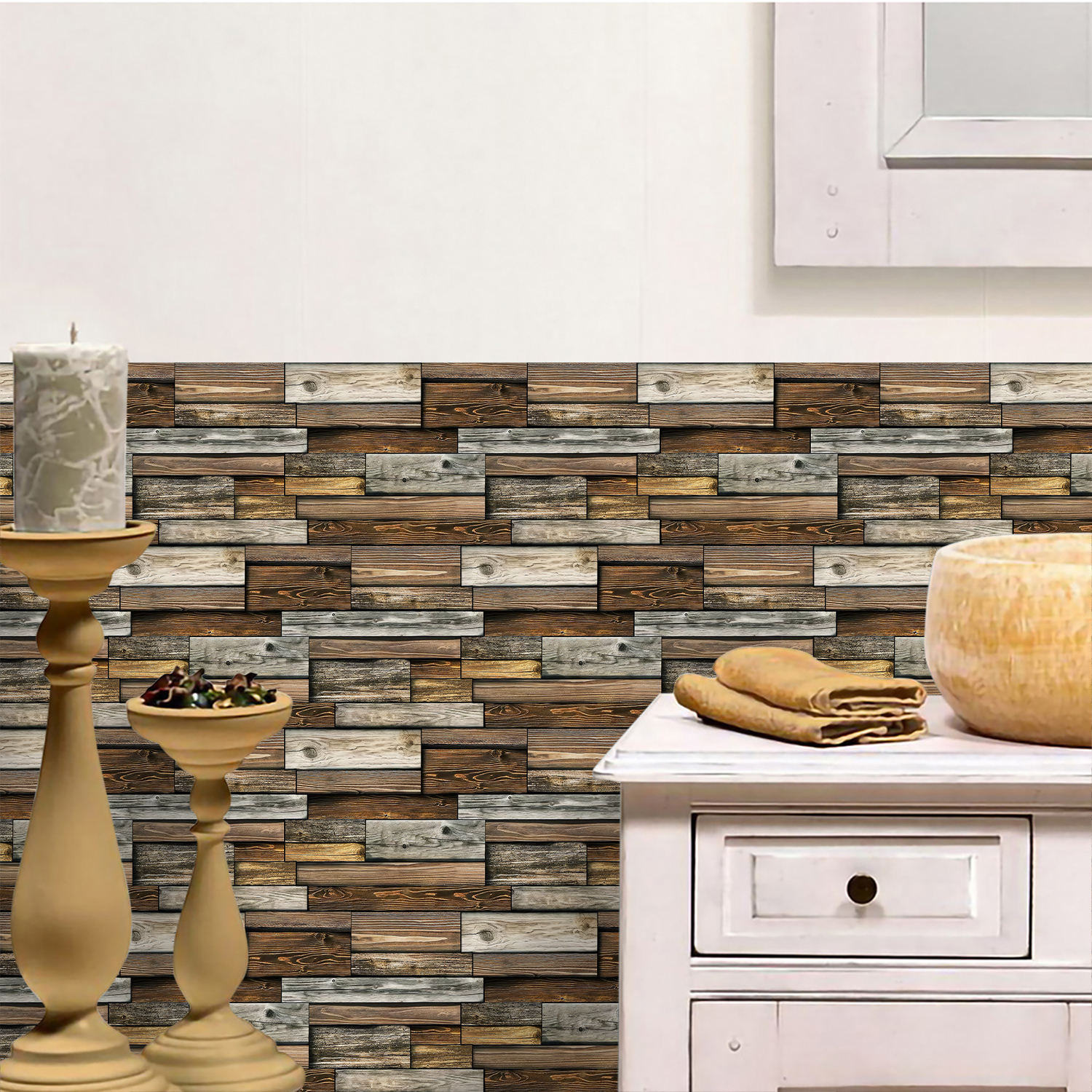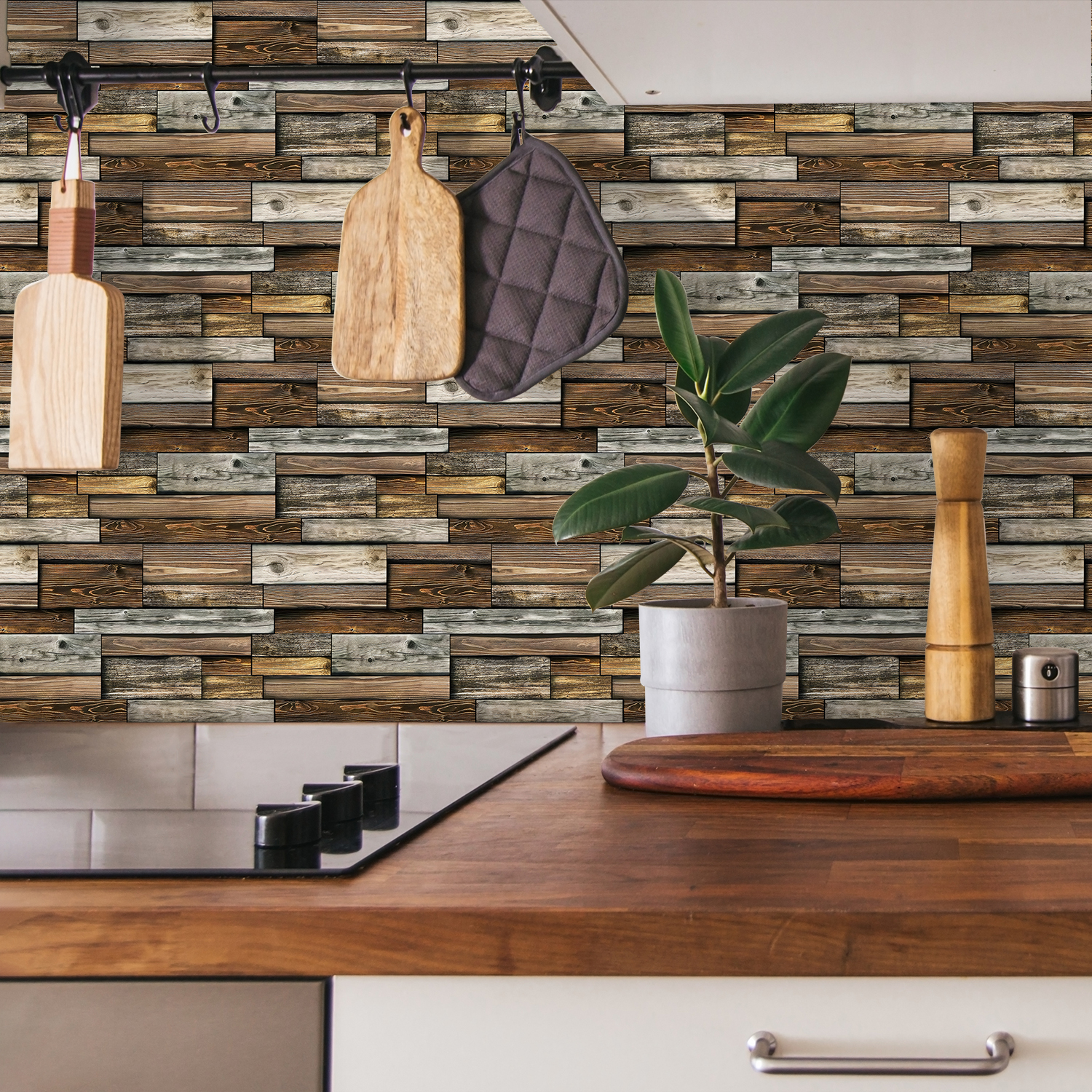 Special-shaped Light Brown Wood Grain Wall Stickers Self-adhesive Wall Stickers Suitable For Room Decoration - Oil-proof And Durable, Easy To Clean, Peelable