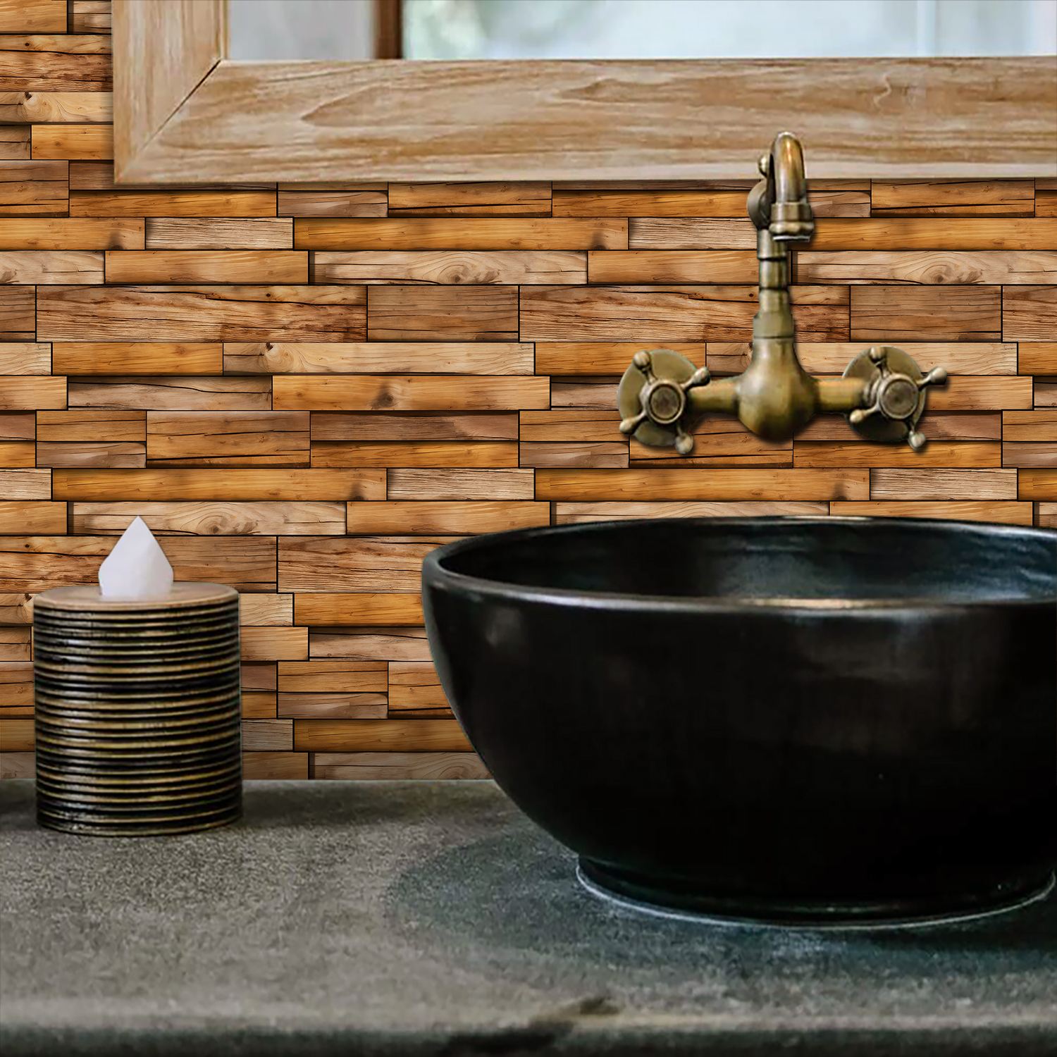 Special-shaped Wood Grain Wall Stickers, PVC Waterproof Peel-and-stick Wallpaper For Kitchen Splashback, Bathroom, Dormitory Decoration With Moisture-proof Self-adhesive Wallpaper