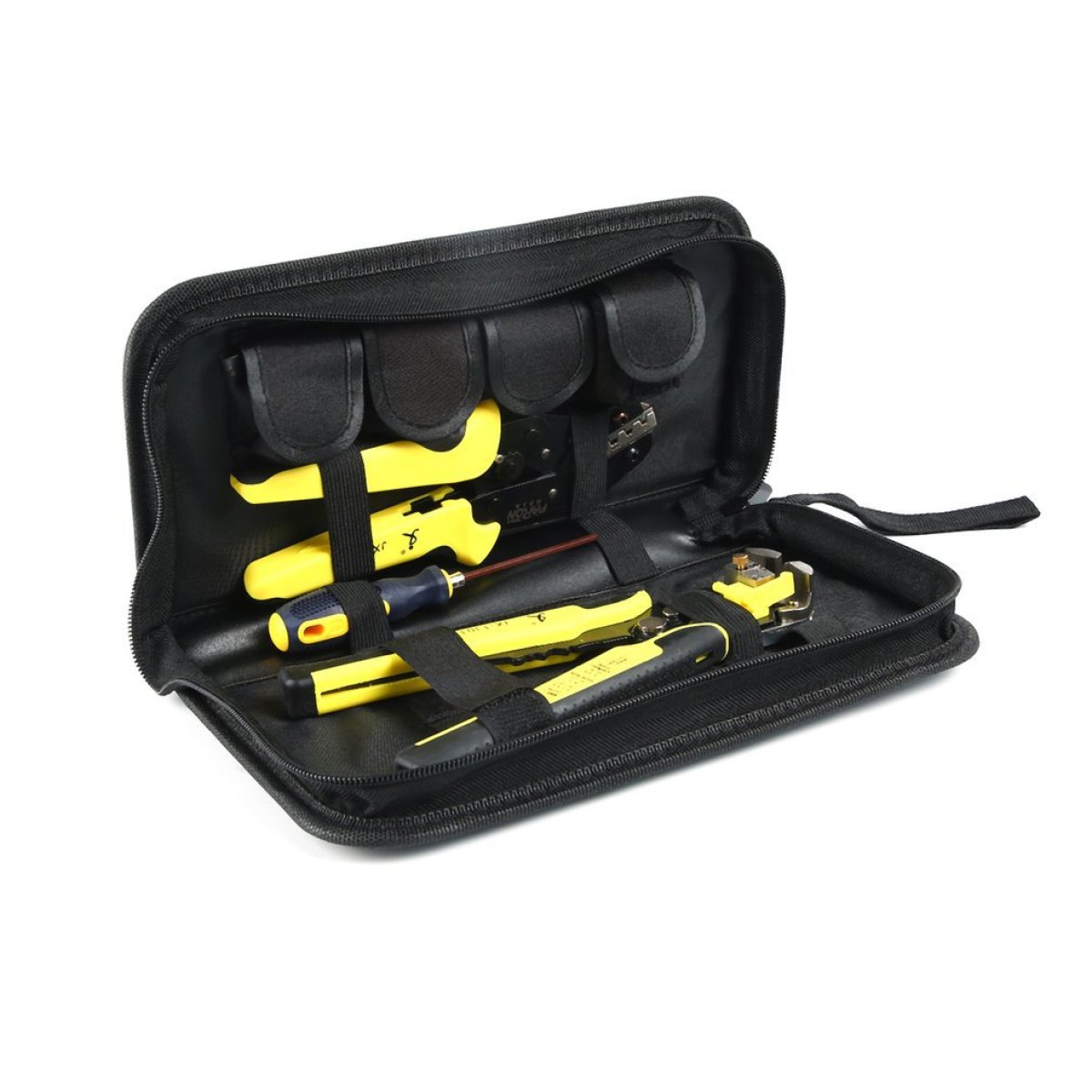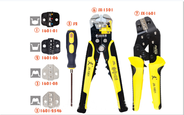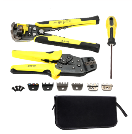 4 die in 1 crimping set + 850PCS multi-specification terminal combination tool (JX-D4) is refined from imported manganese steel, with high durability, long service life, easy to use, and the clamp head is refined by high-precision powder metallurgy , High accuracy; the set can be used to crimp terminals of various specifications and models, and is equipped with 21 different specifications, a total of 850 terminals for crimping and replacement of the mouth mold special dual-purpose screwdriver, is a practical professional Set of crimping tools.