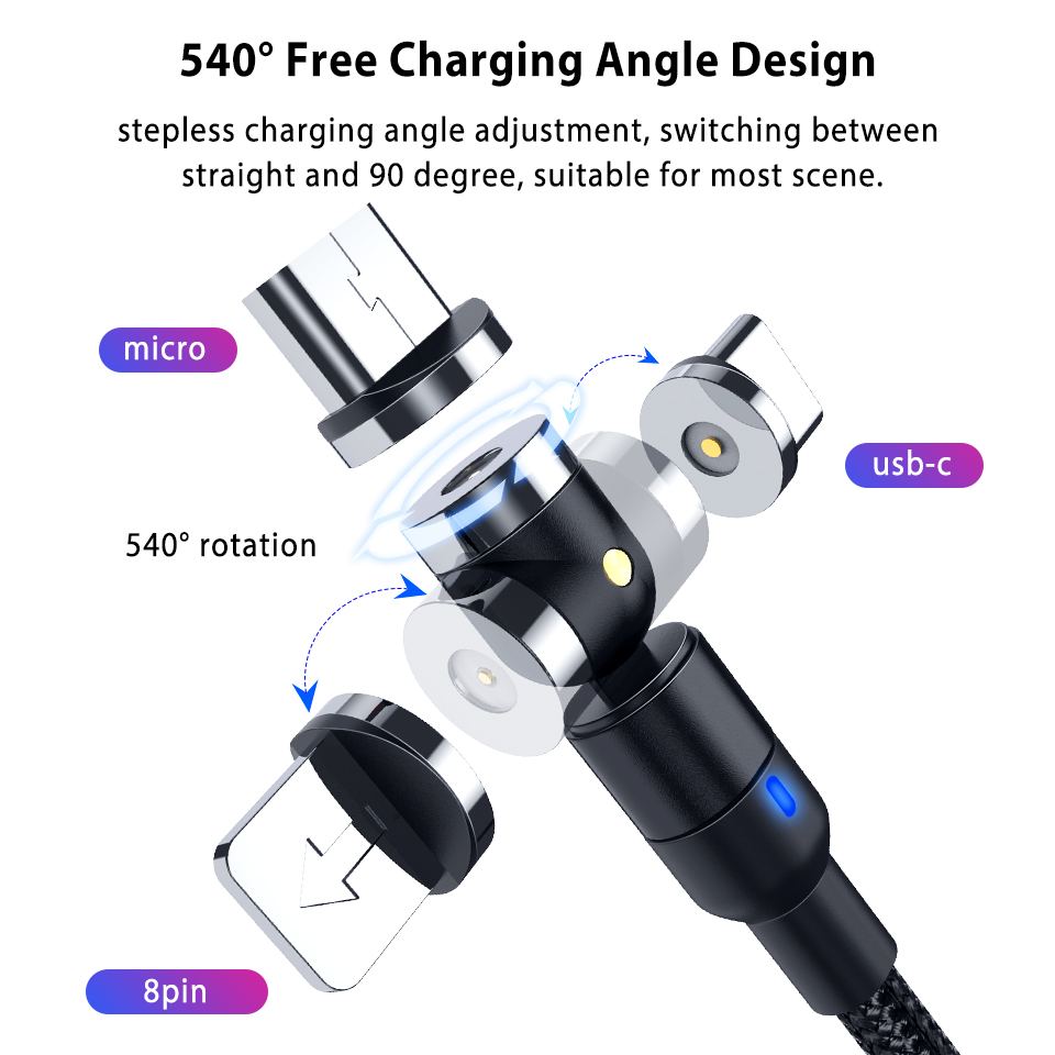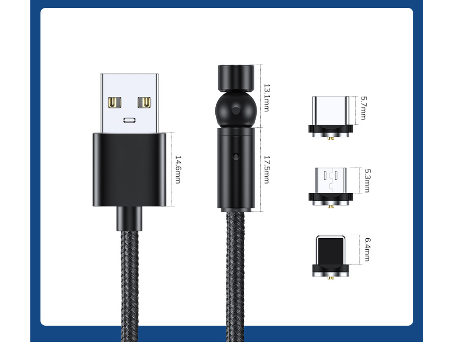 [Product Features]: It can rotate 540 degrees of strong magnetic force, and the blind magnetic suction automatically calibrates the docking to charge, which greatly reduces the damage to the mobile phone charging interface because of the number of insertions and withdrawals. The magnetic line 1 time = traditional N times. When the dust plug protects the phone,