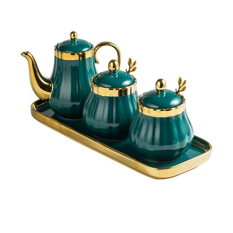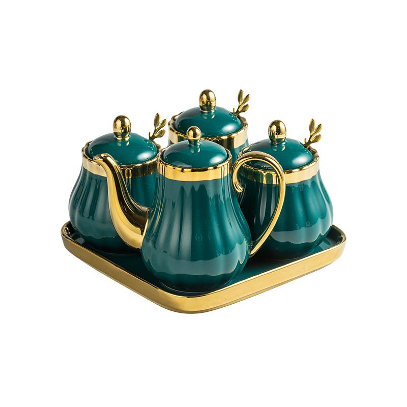 style6: Green gold 1 pot 3 cans 3 spoons 1 square tray