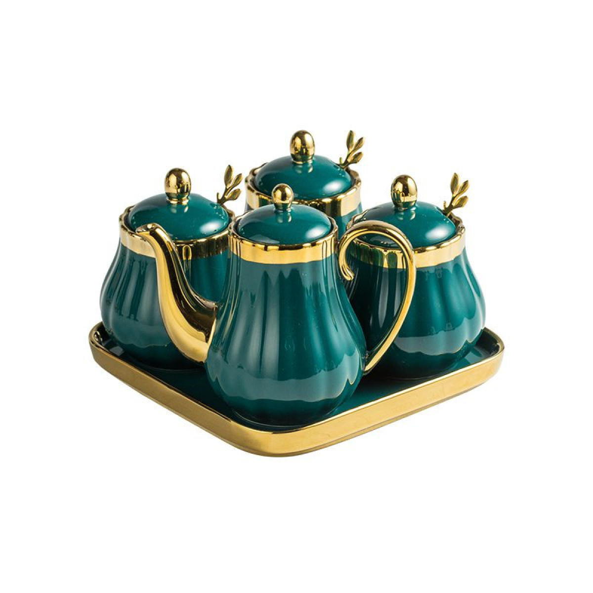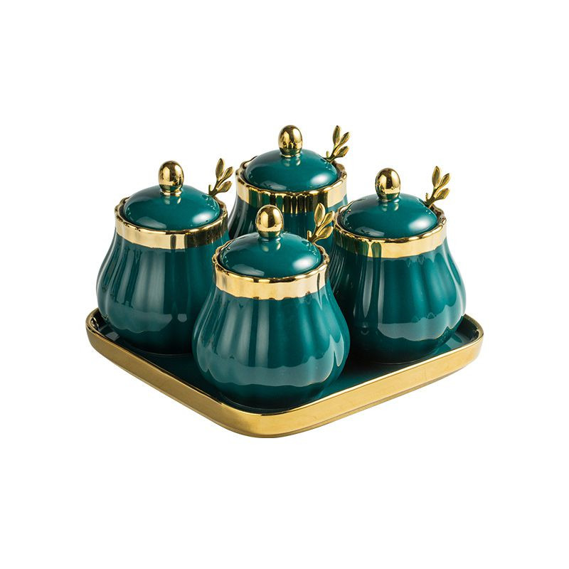 style5: Green gold 4 cans 4 spoons 1 square tray