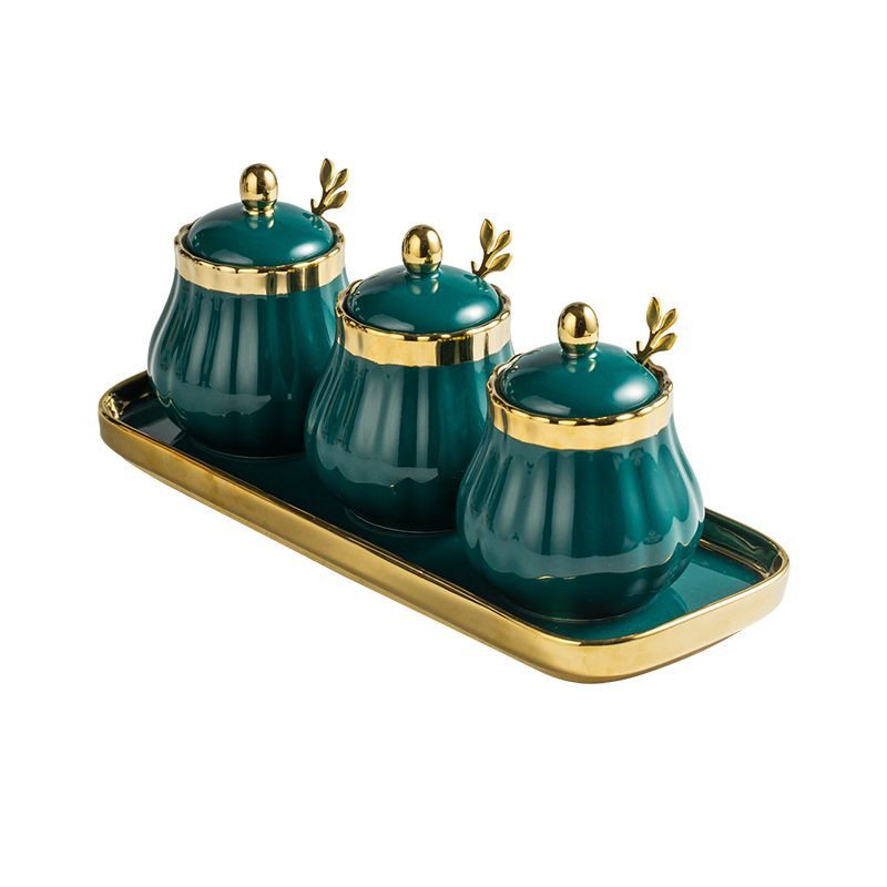 style3: Green gold 3 cans 3 spoons 1 rectangular tray