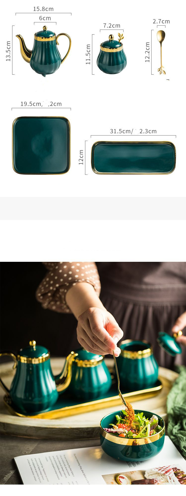 style4: Green gold 1 pot 2 pots 2 spoons 1 rectangular tray