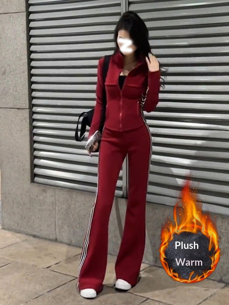 Spicy Girl Temperament With Plush Long Sleeved High Waisted Pants Sports Suit