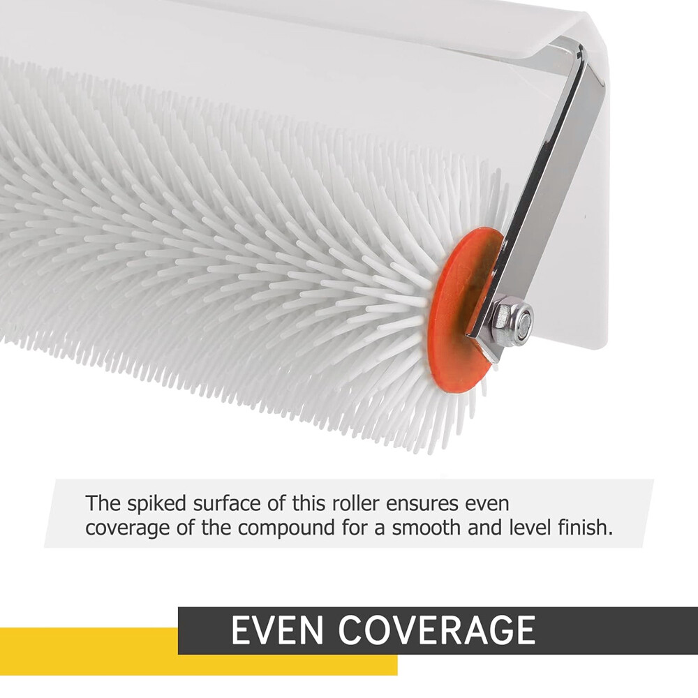 【Anti-Splash Design】The defoaming roller brush with splash guard is used to prevent the cement splash into the wall.The spiked roller can keep the clean and comfortable use
