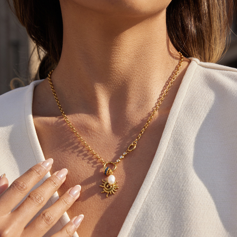 Spiral Solar Pendant Titanium Steel Freshwater Pearl Necklace