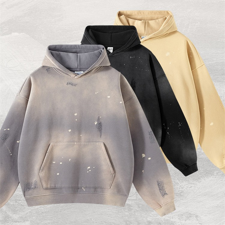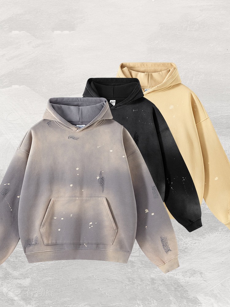Splash-ink Brushed Old Men's Wide Hooded Sweater
