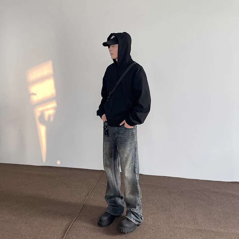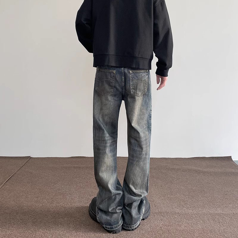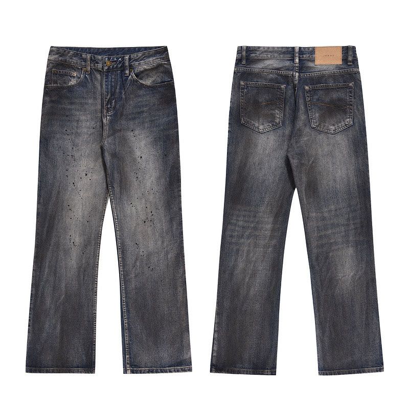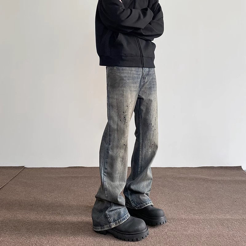 Splash Ink Washed Gray Jeans Ins Trendy Bootleg Pants Casual Hiphop