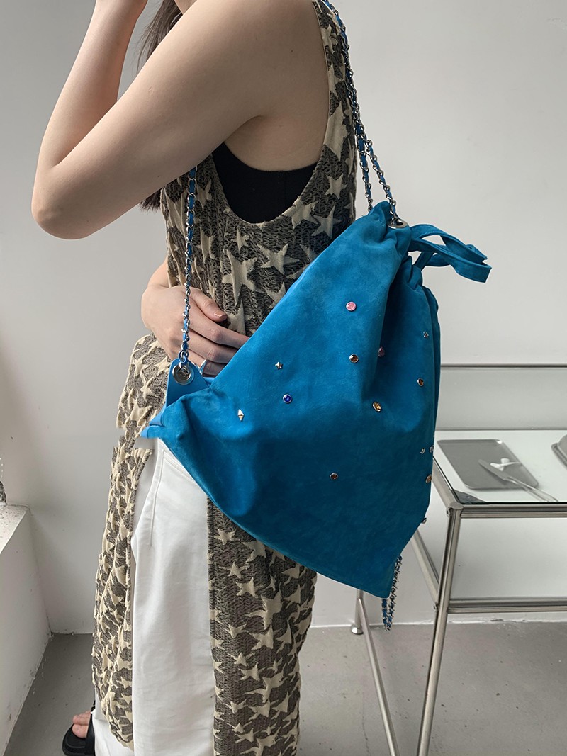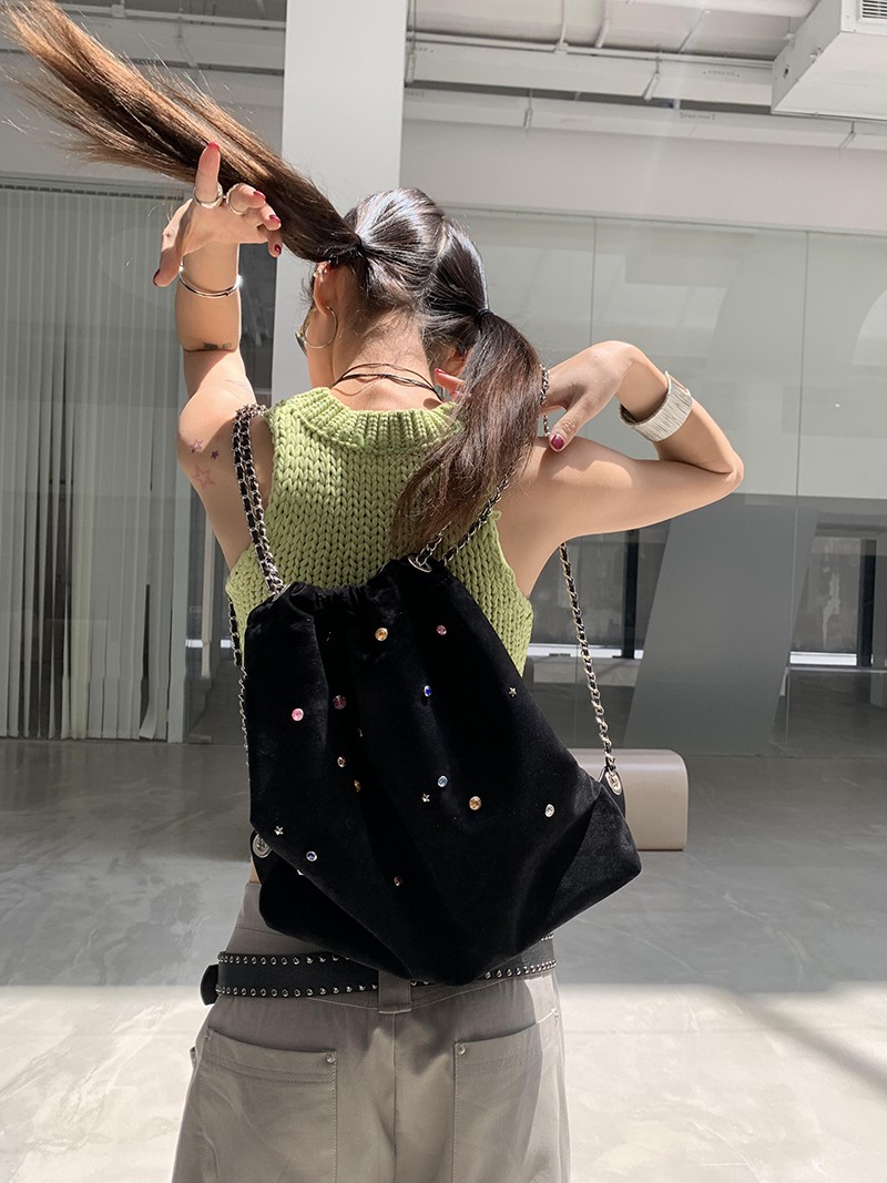 Spliced Colorful Diamond Drawstring Chain Backpack For Women