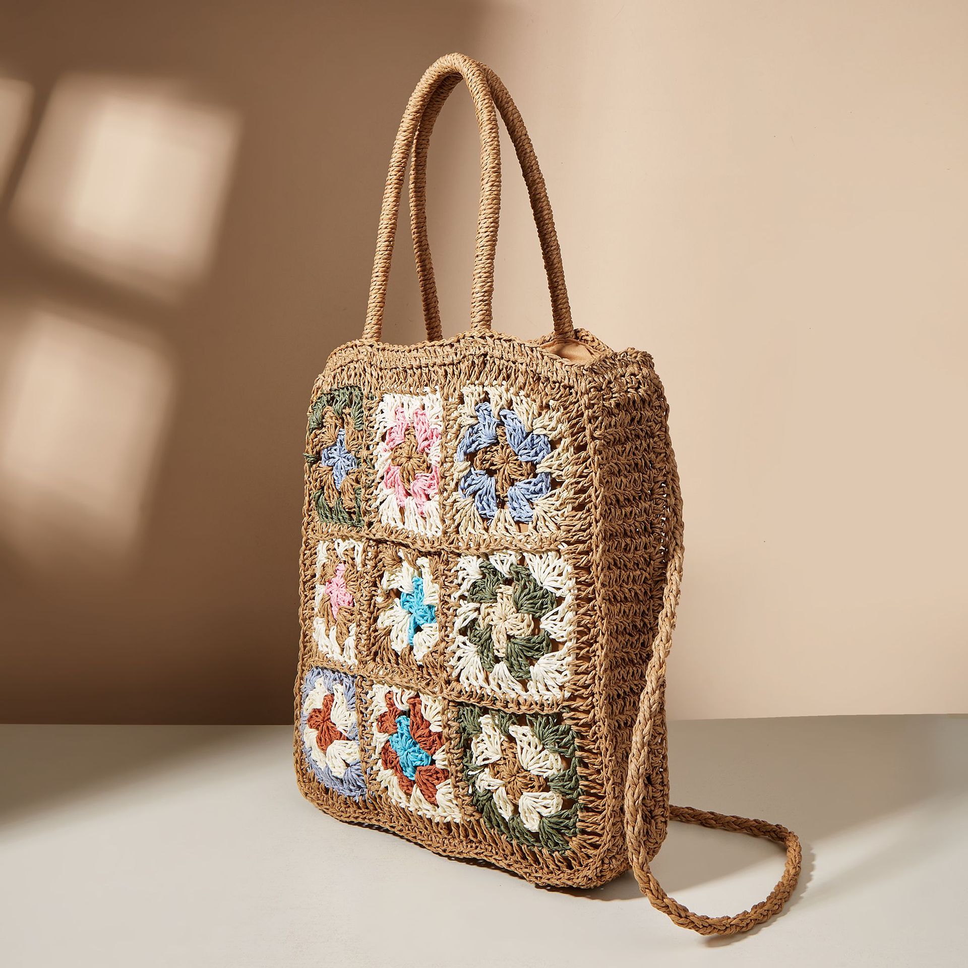 Splicing Braided Straw One Shoulder Portable Checkered Bag