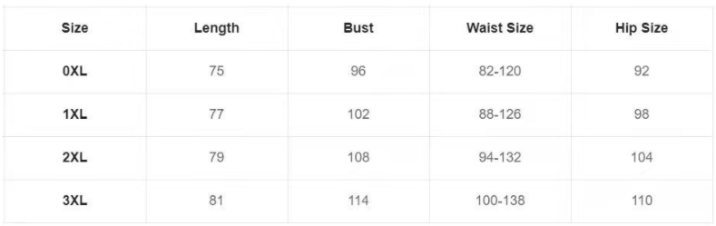 Size: 0XL, 1XL, 2XL, 3XL, 4XL