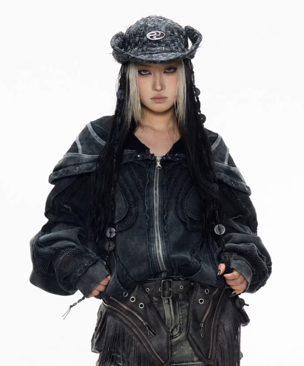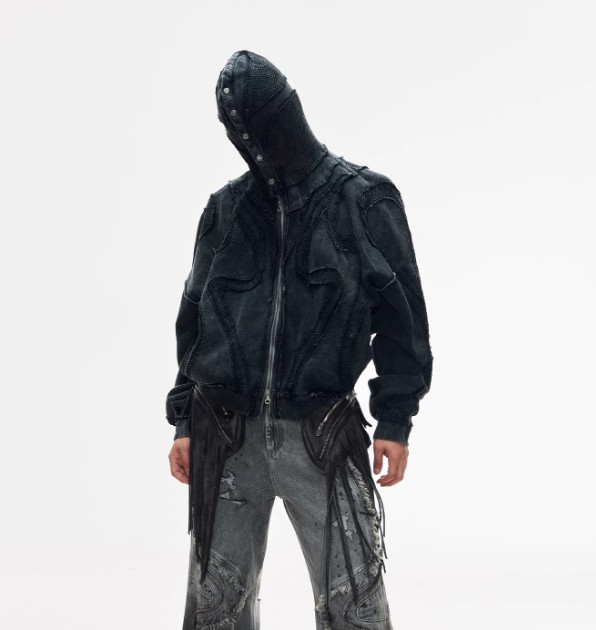 Split Deconstructed Dyed Hoodie With A Zip-up Hood