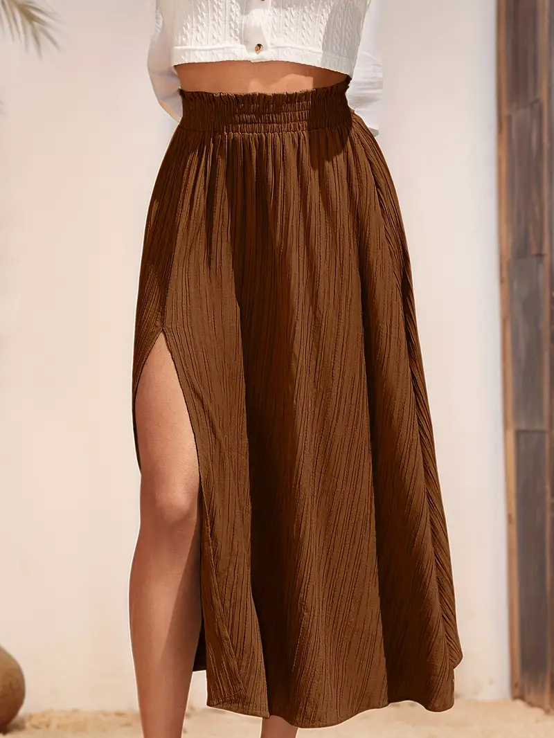 Split High Waist Elastic Waist Long Holiday Skirt